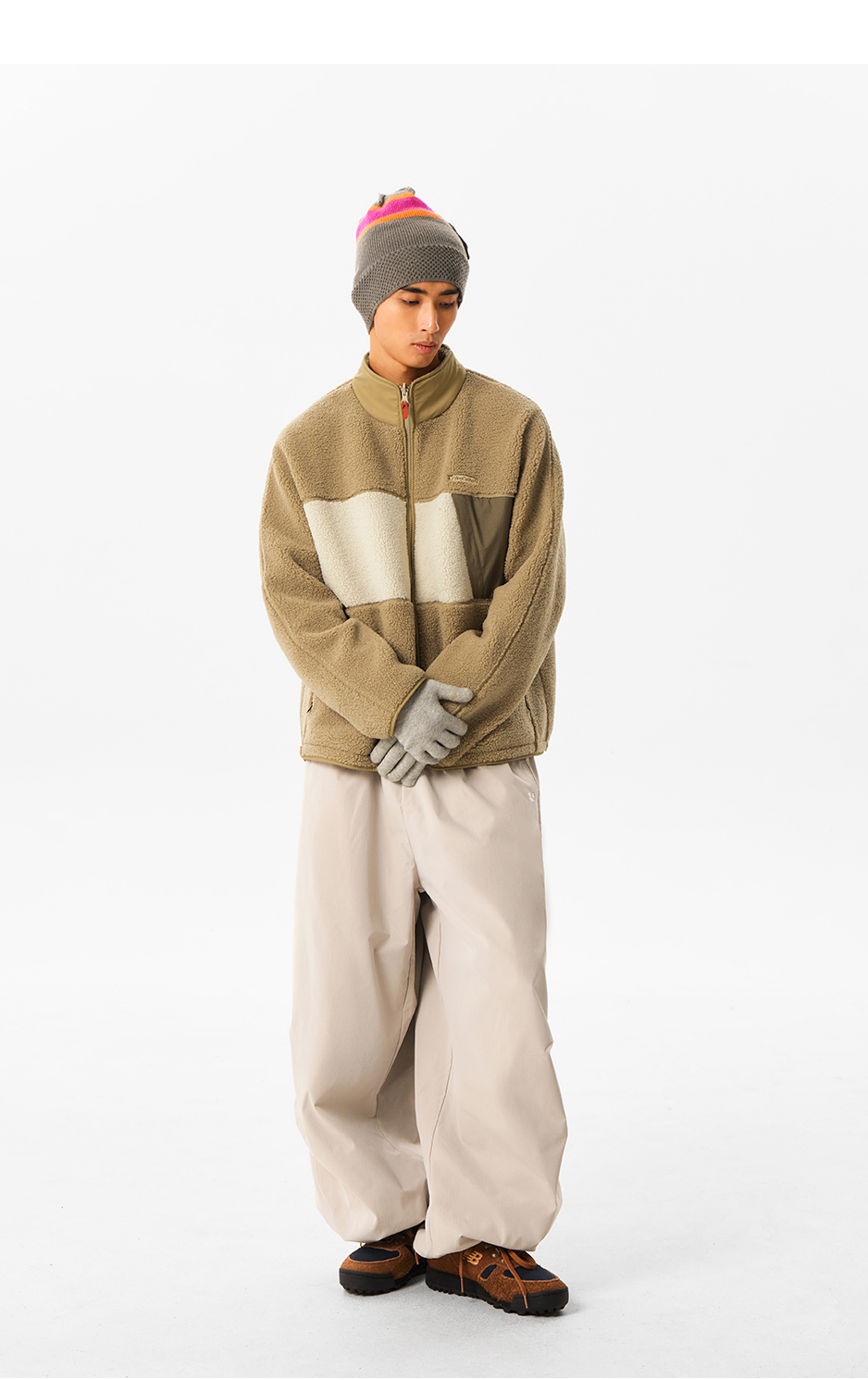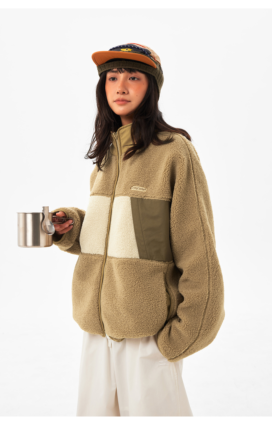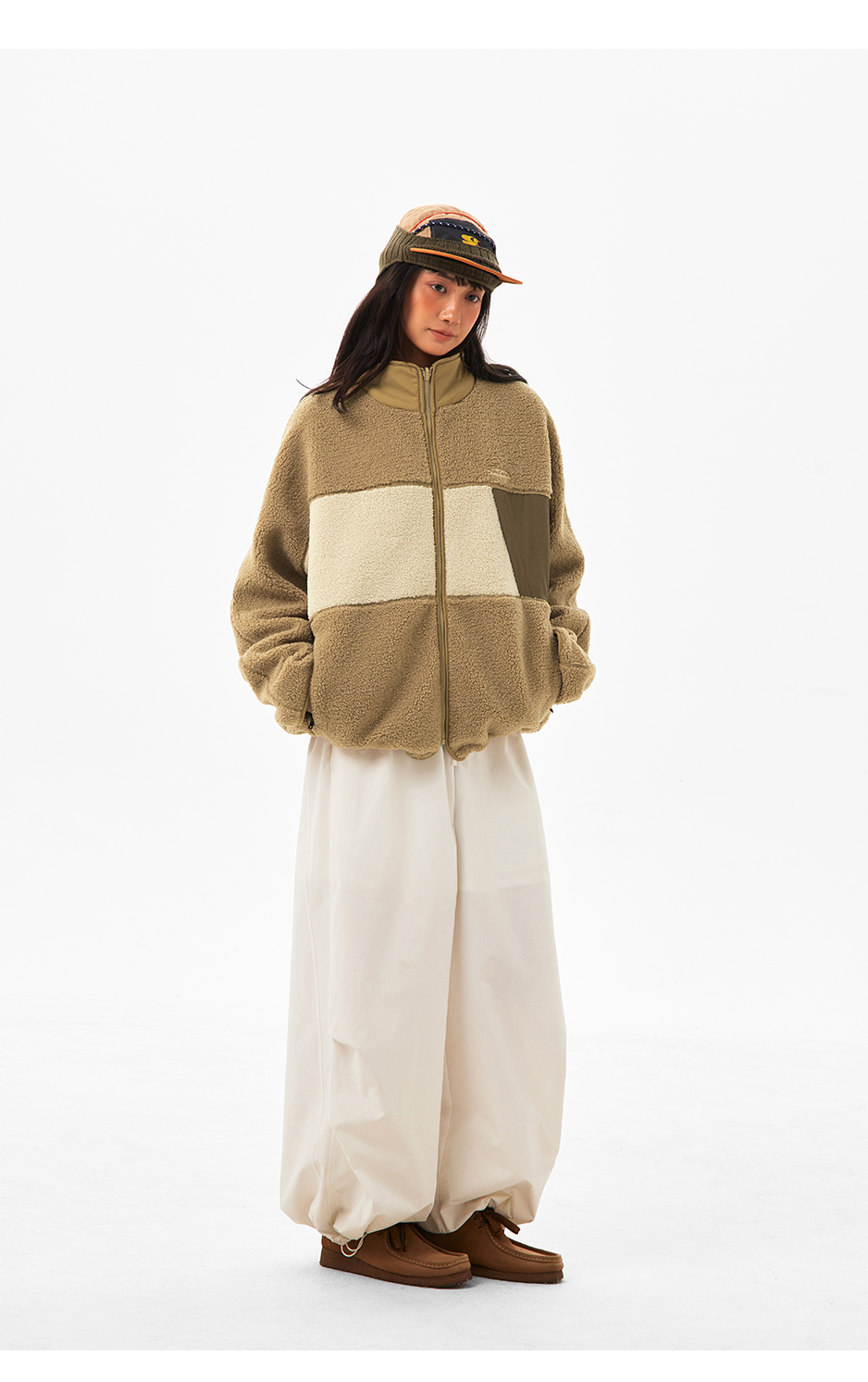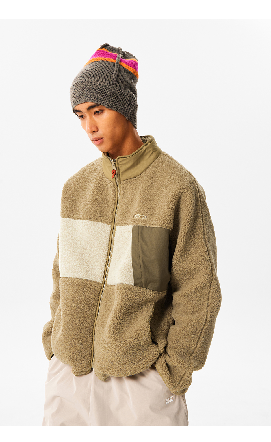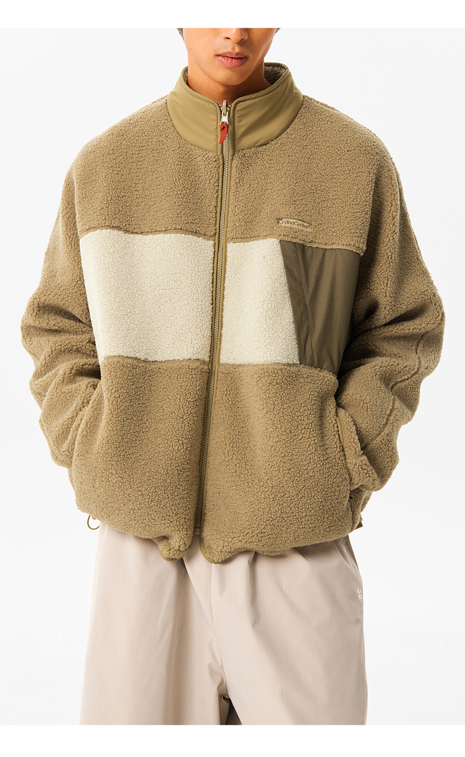 CryingCenter宽松廓形拼接羊羔绒立领外套户外摇粒绒 哭喊中心