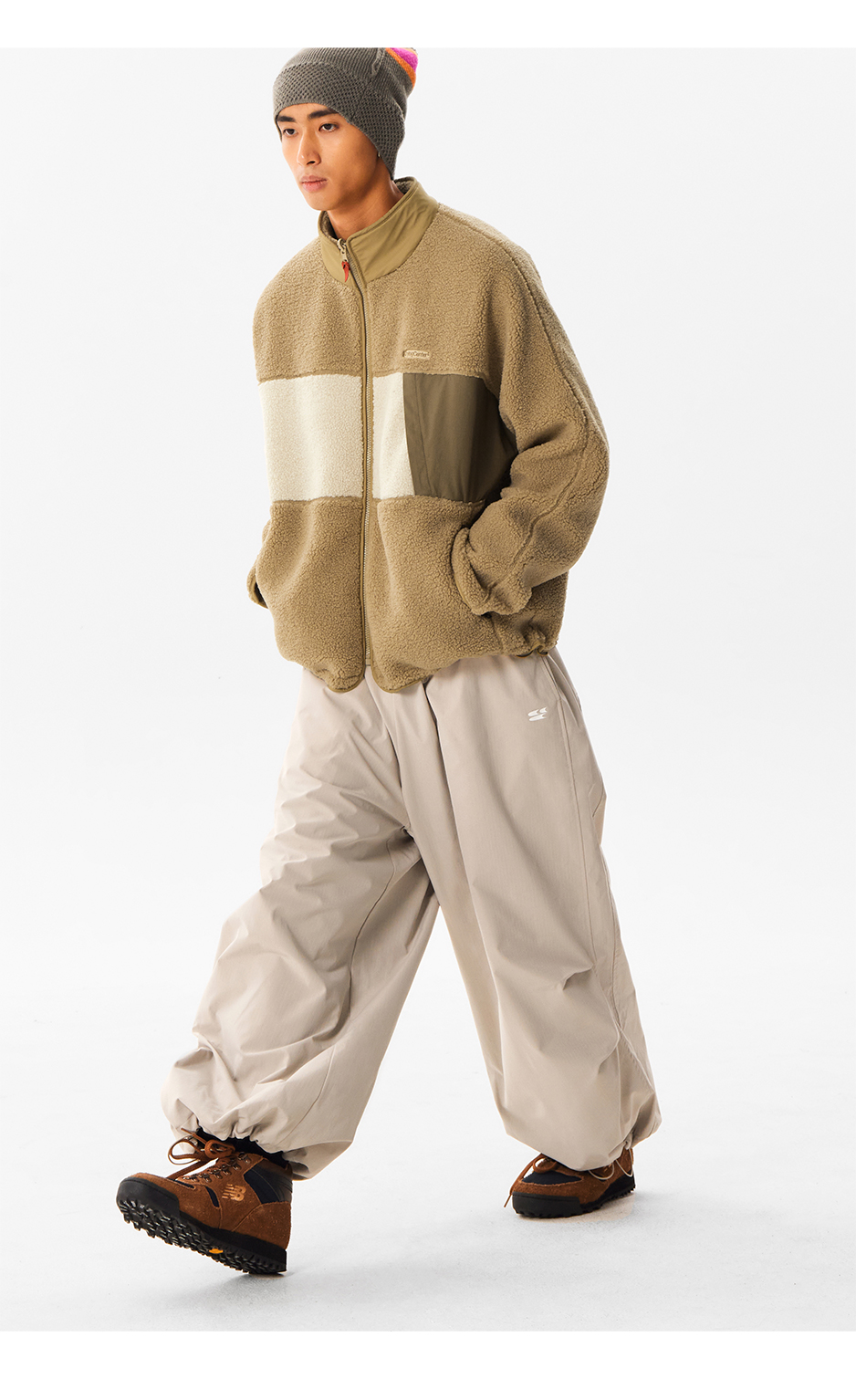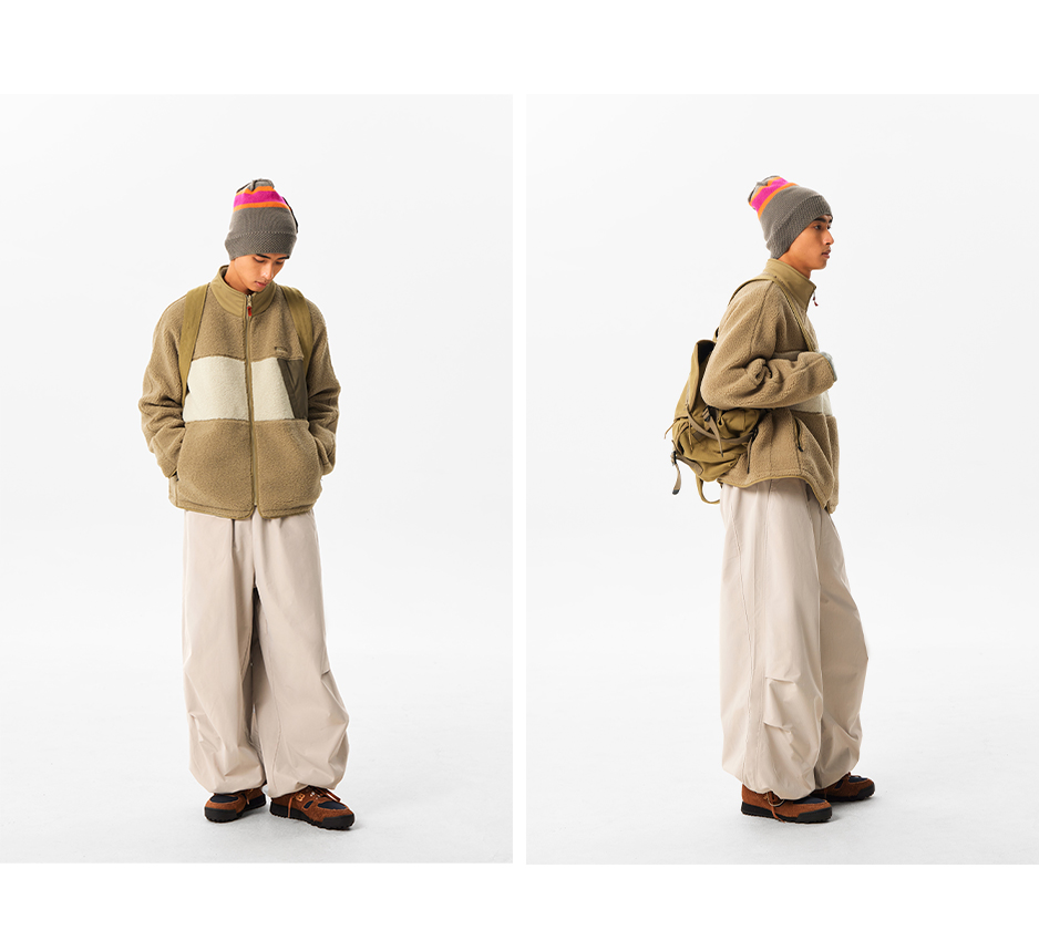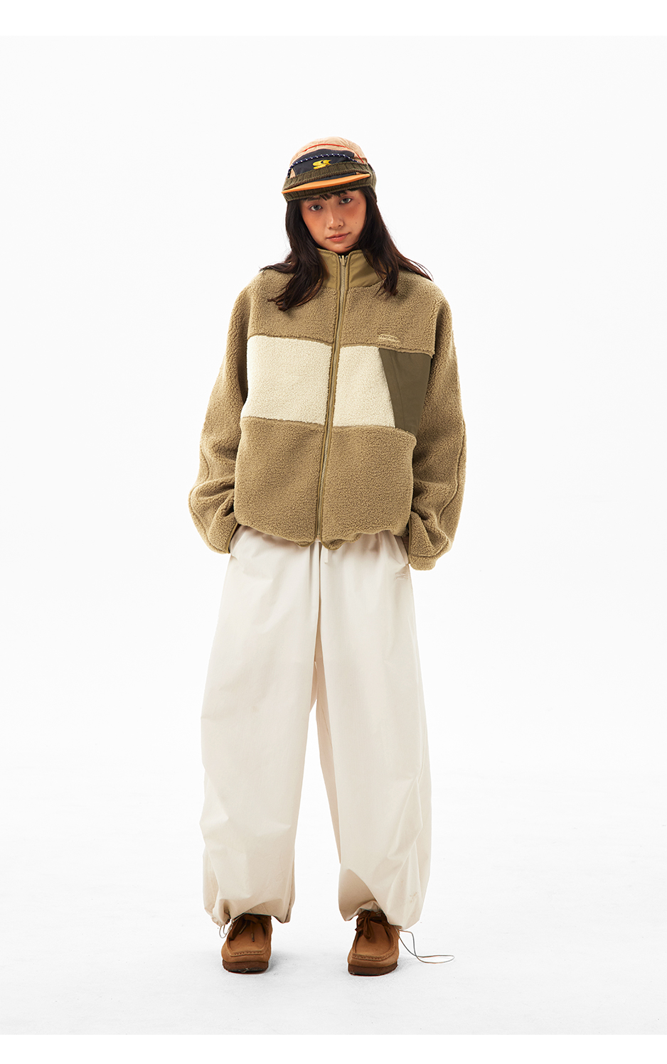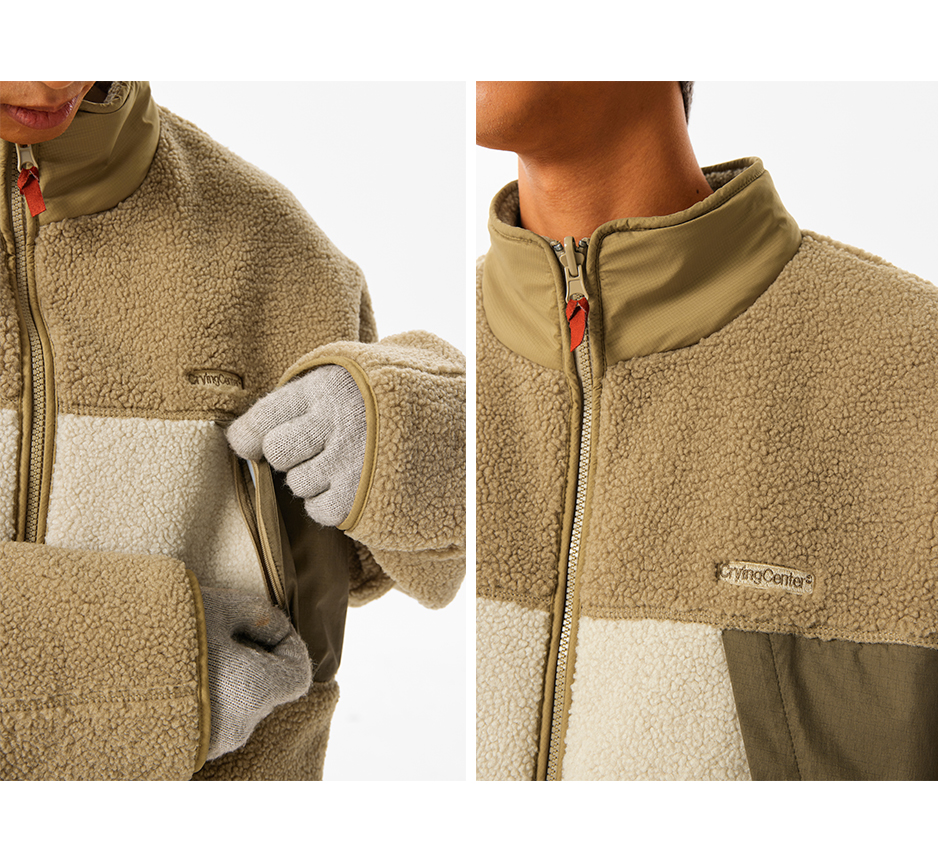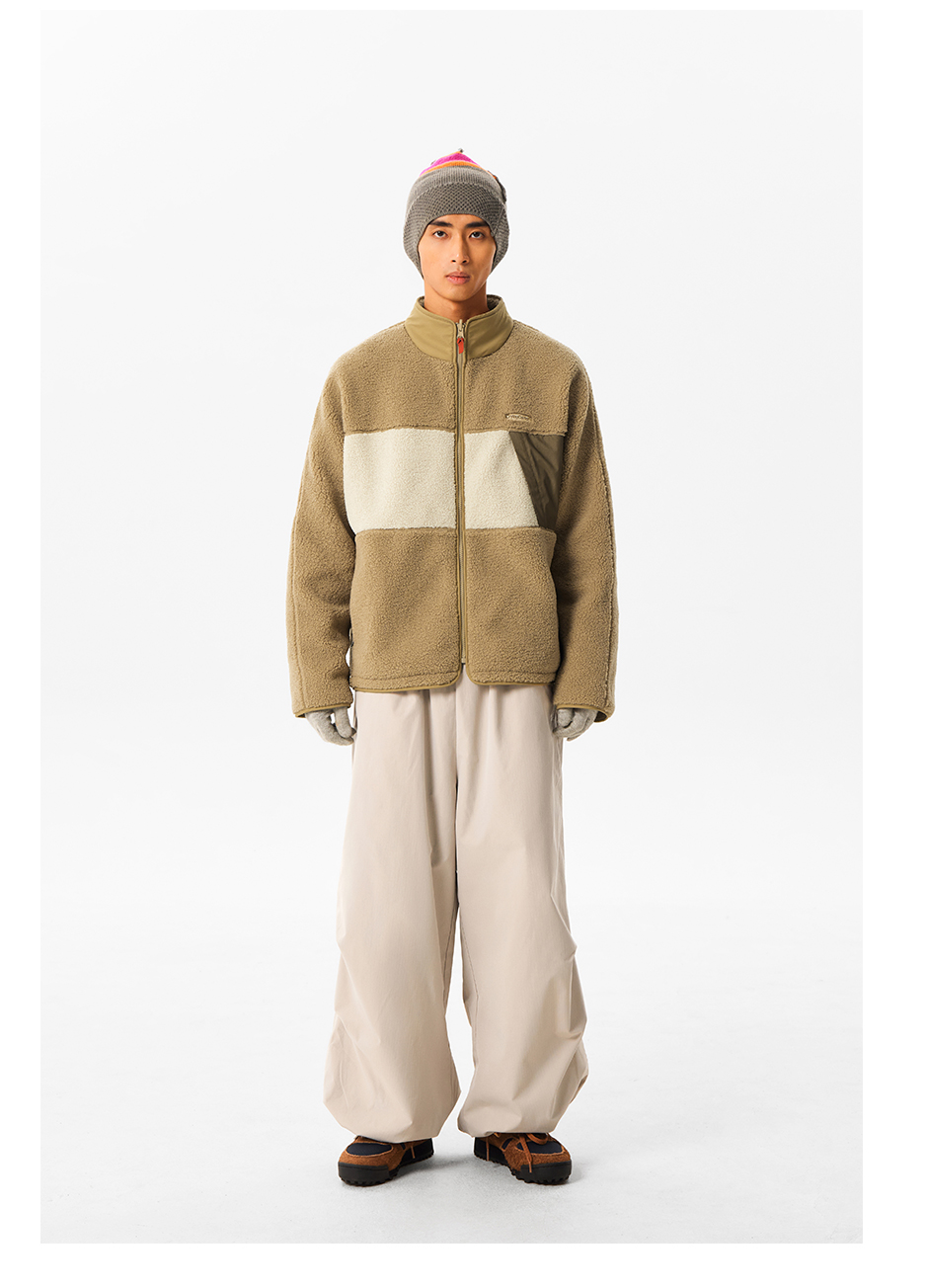 CryingCenter宽松廓形拼接羊羔绒立领外套户外摇粒绒 哭喊中心