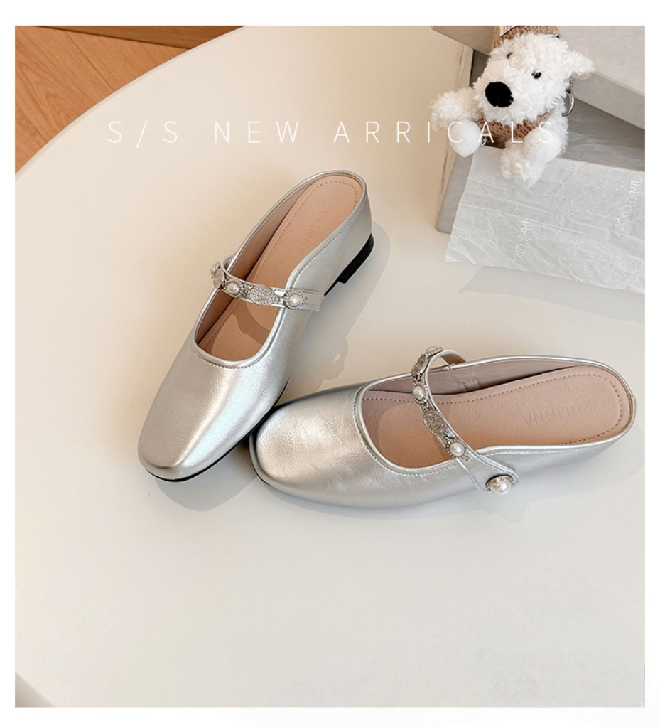 爆!2025新款手工女鞋头层皮玛丽珍穆勒鞋夏季5cm内增高