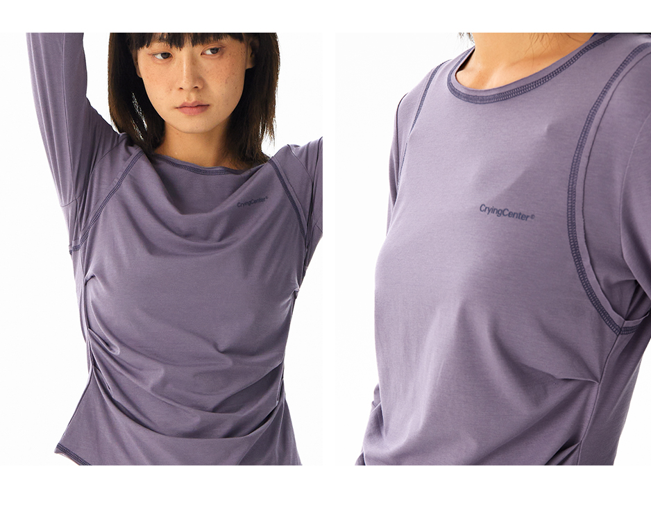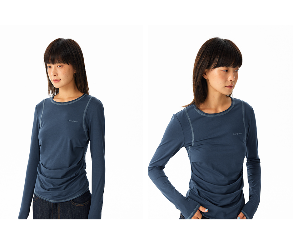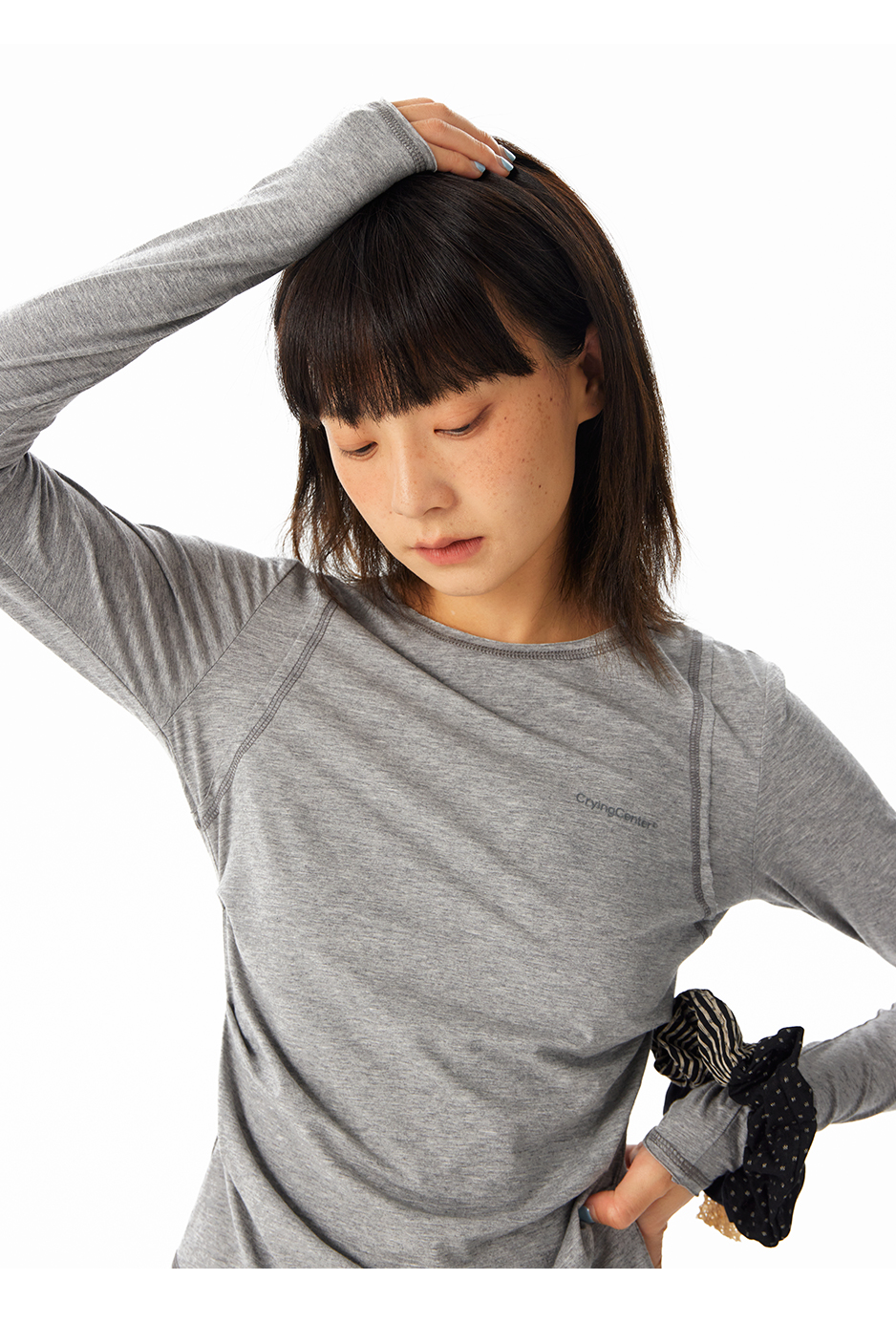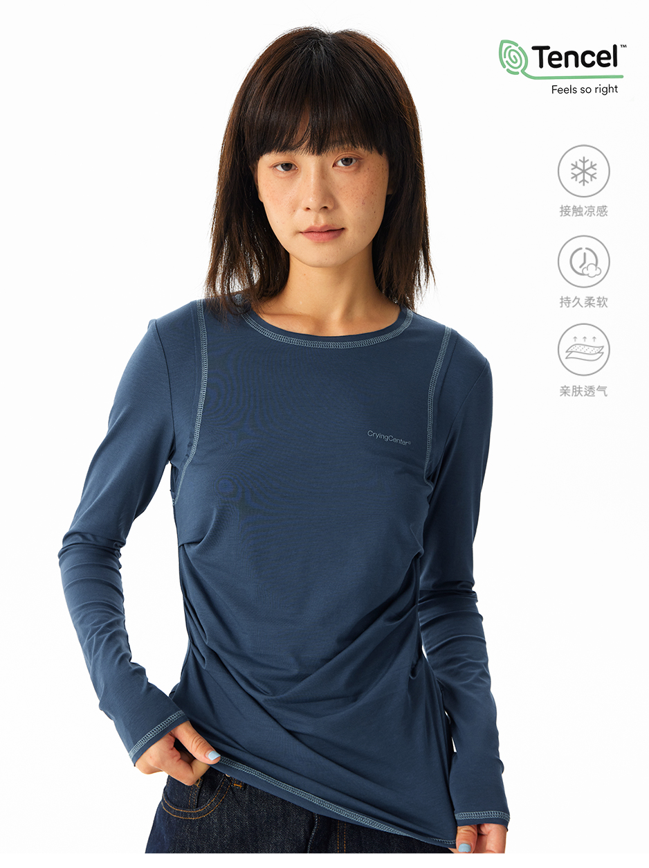 CryingCenter假两件凉感天丝莫代尔亲肤透气休闲收腰紧身长袖tee