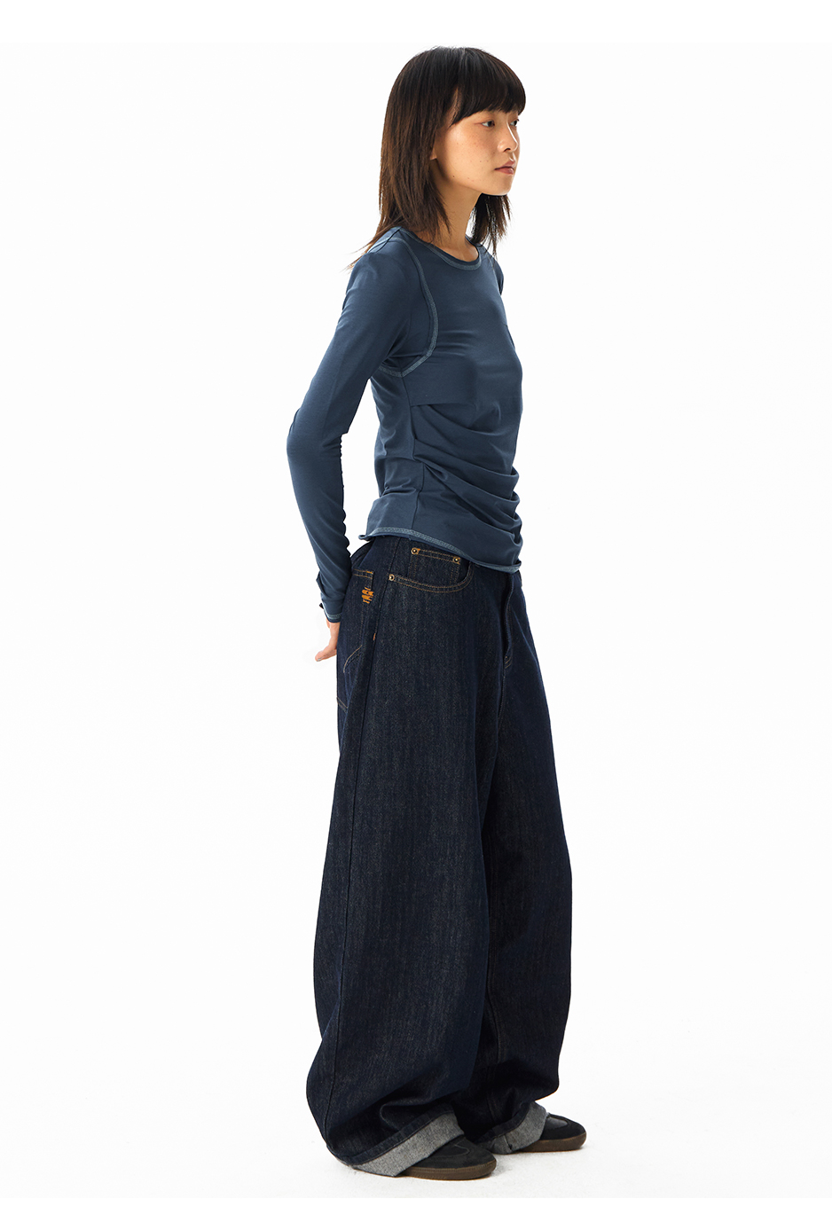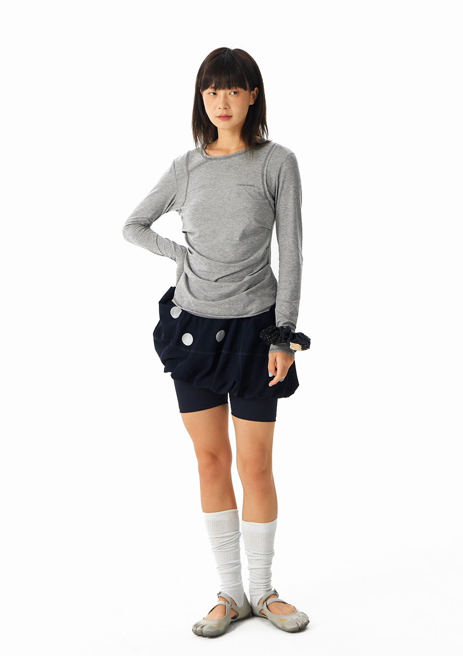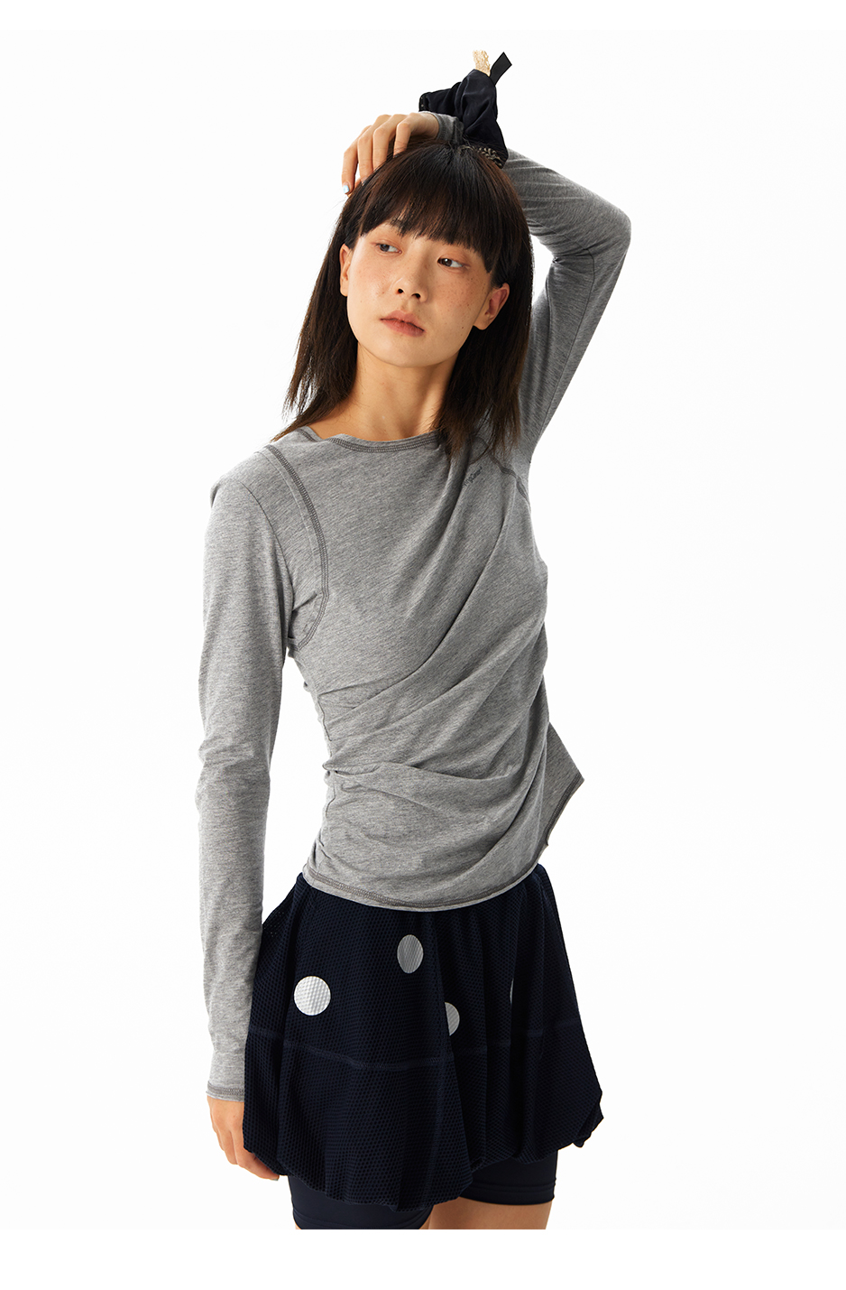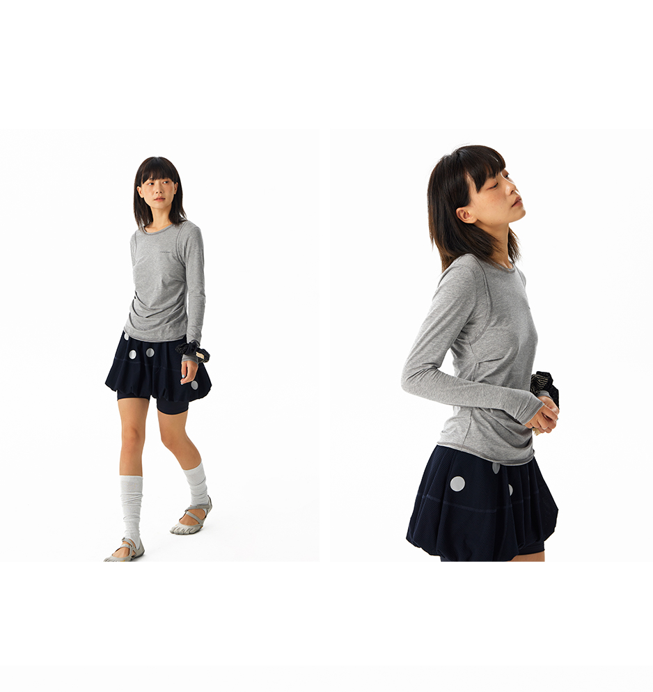 CryingCenter假两件凉感天丝莫代尔亲肤透气休闲收腰紧身长袖tee