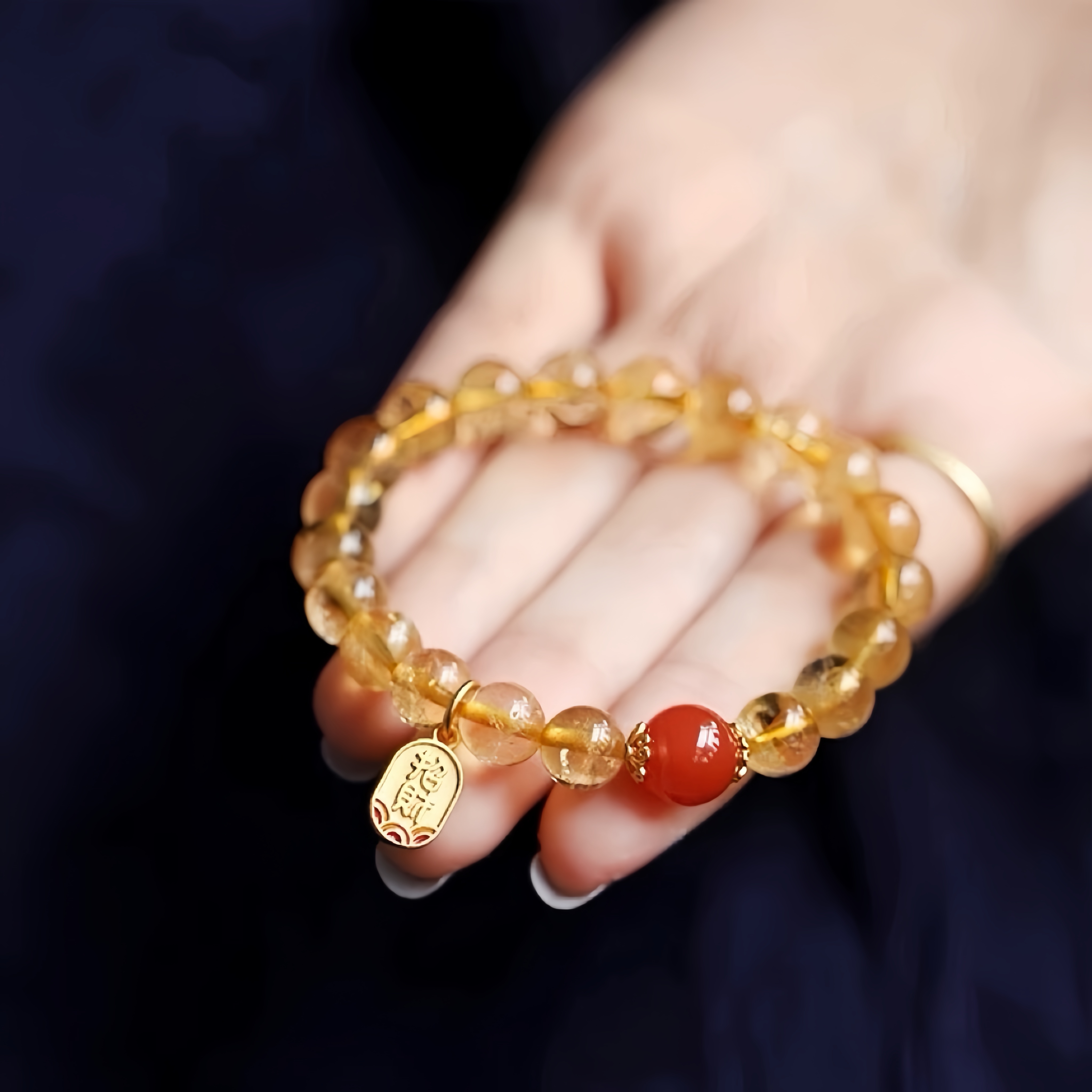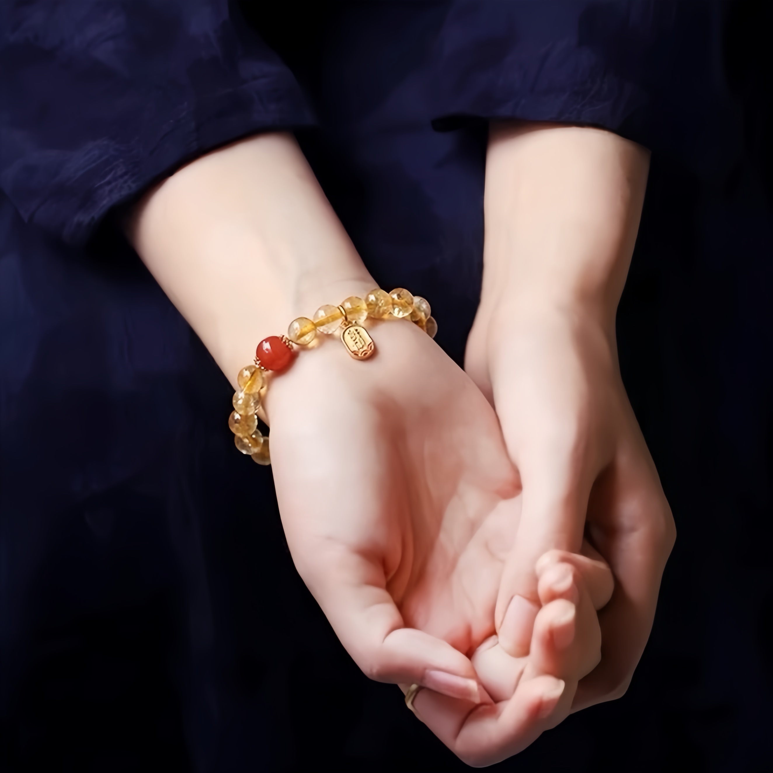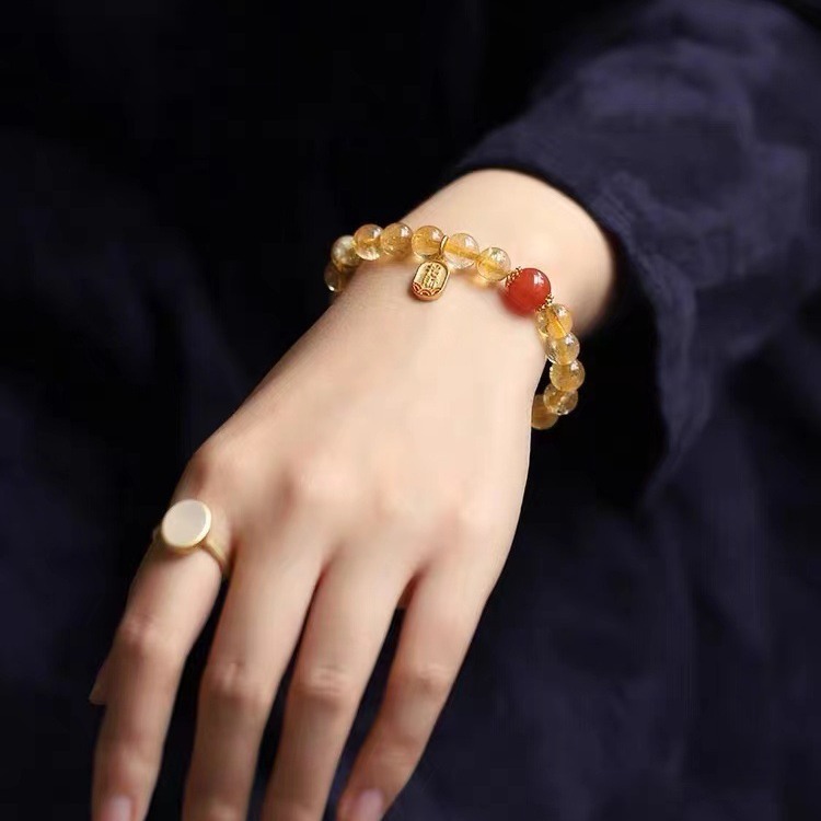 【丹辉·黄水晶红玛瑙手串】黄水晶手串女设计款 配饰红玛瑙简约女黄水晶手链