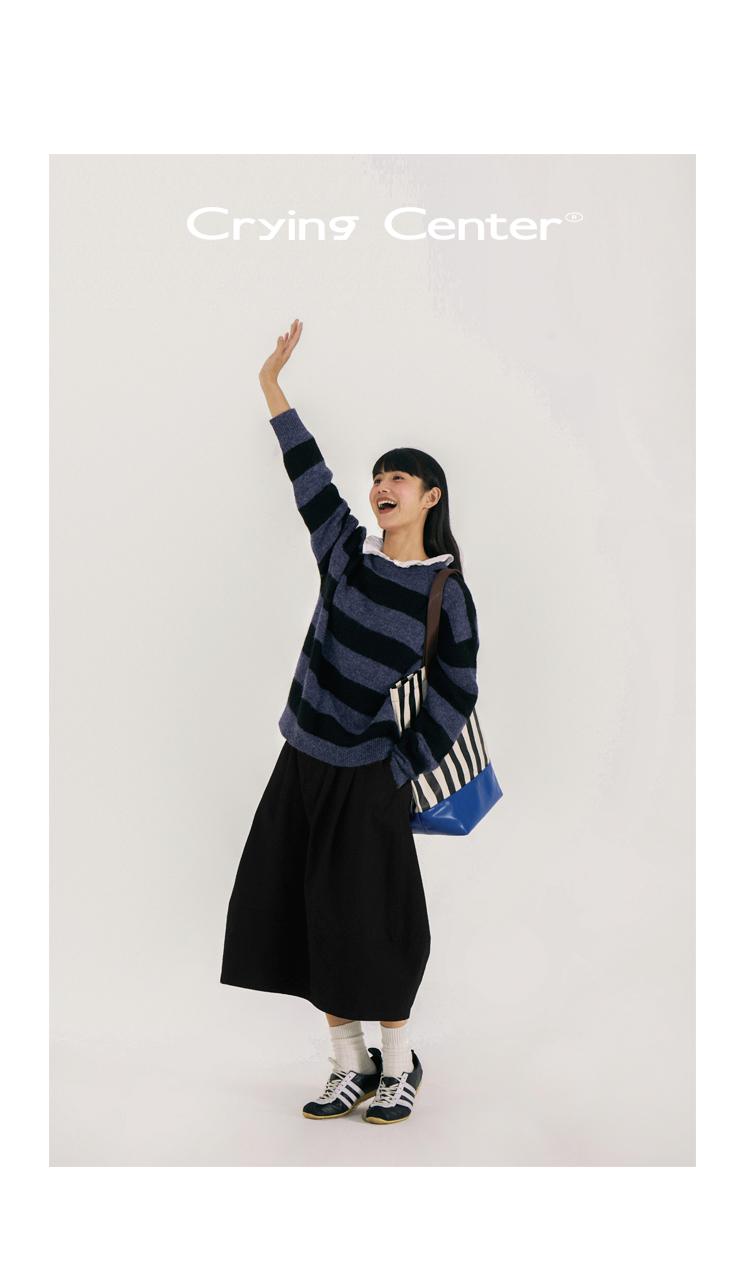 CryingCenter 宽条纹混羊驼毛针织衫毛衣 哭喊中心