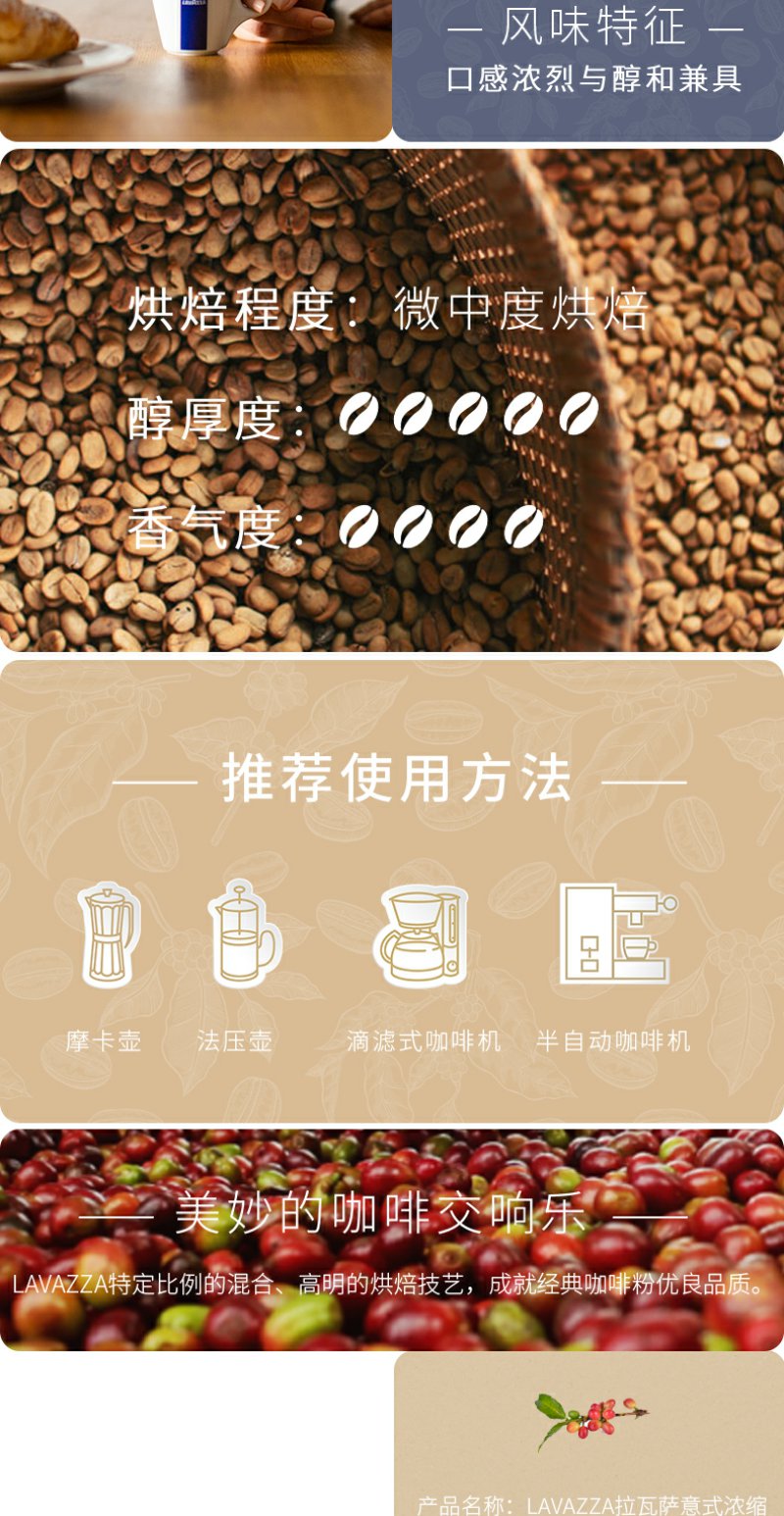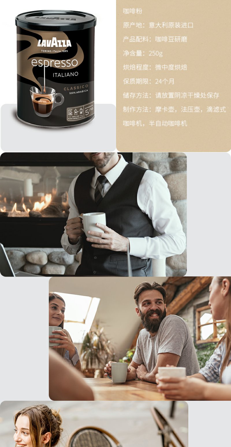 拉瓦萨 意大利原装进口拉瓦萨 意式浓缩咖啡粉 250g