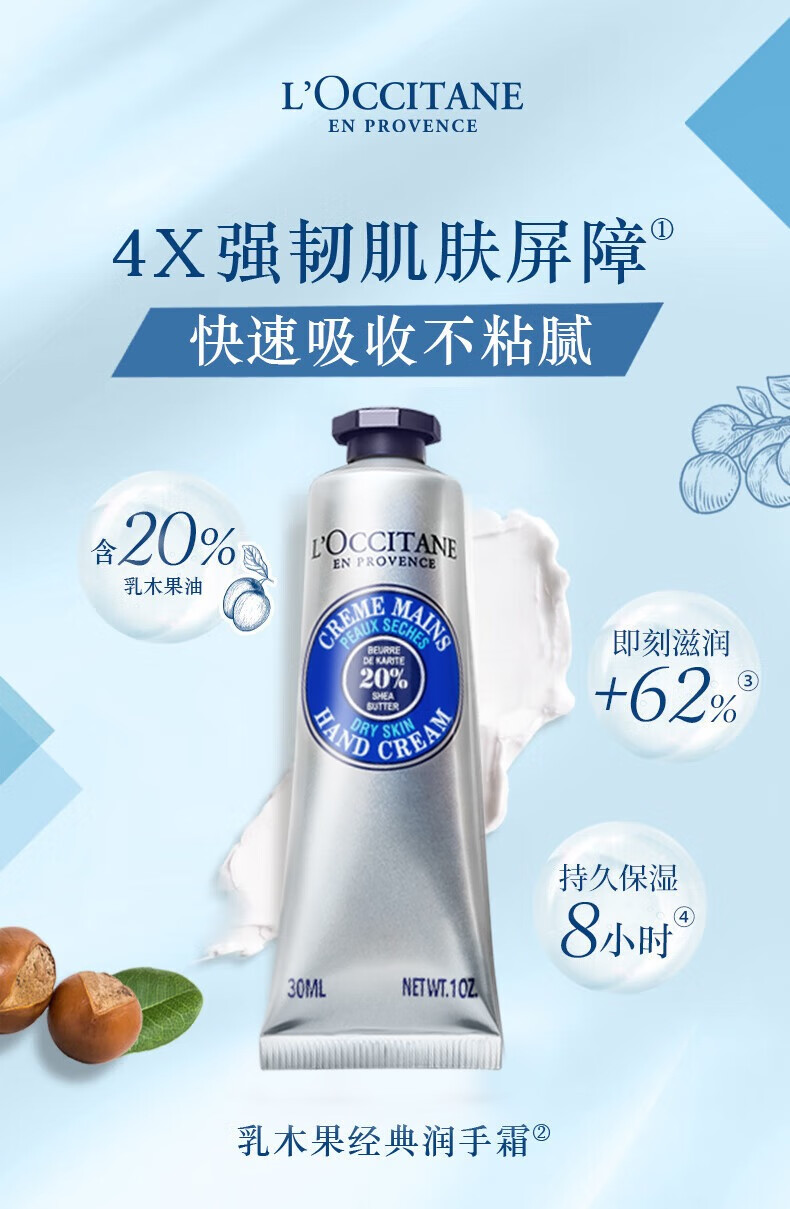 欧舒丹乳木果护手霜30ml手膜补水防干裂易留香易吸收伴手礼送男女友礼物 心选到家