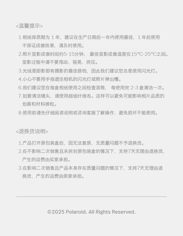 温馨提示:此产品不含相纸,需另外单独购买,适用I-Type、600型系列相纸