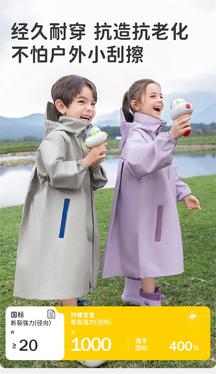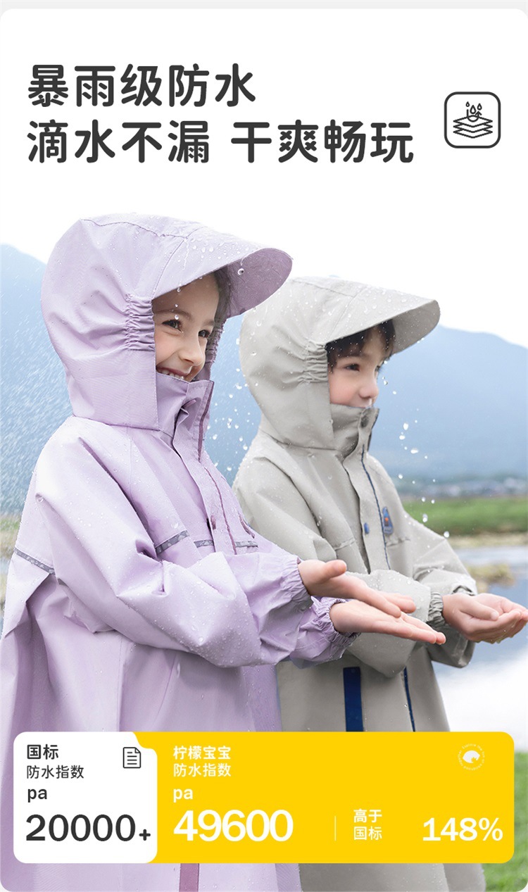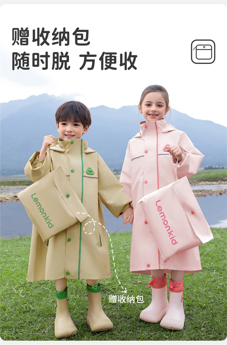 【119.9/件】柠檬宝宝儿童雨衣小学生专用带书包位男童女孩一年级上学雨披2025聚