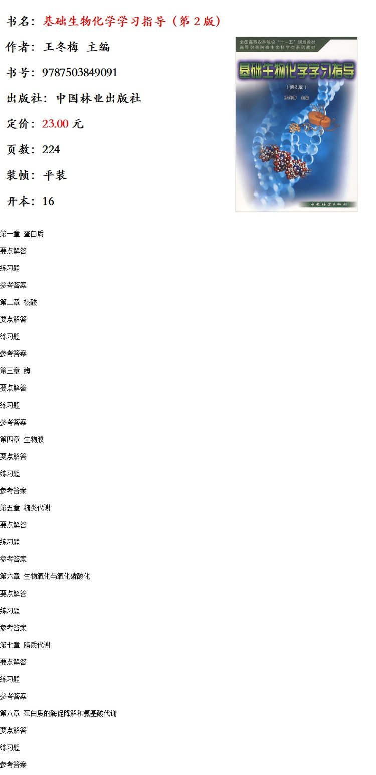 基础生物化学学习指导 第2版 4909王冬梅 全国高等农林院校十一五规划教材 高等农林院校生命科学类系列教材 中国林业出版社畅销书