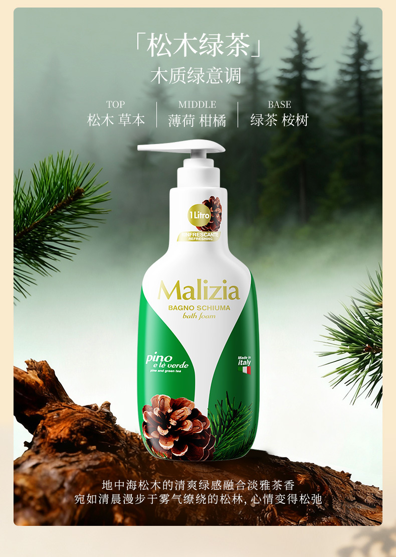 地中海松木的清爽绿感融合淡雅茶香