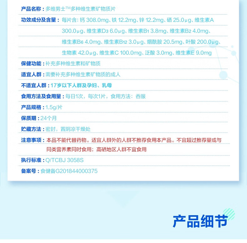 汤臣倍健 多维男士多种维生素矿物质片(60片)