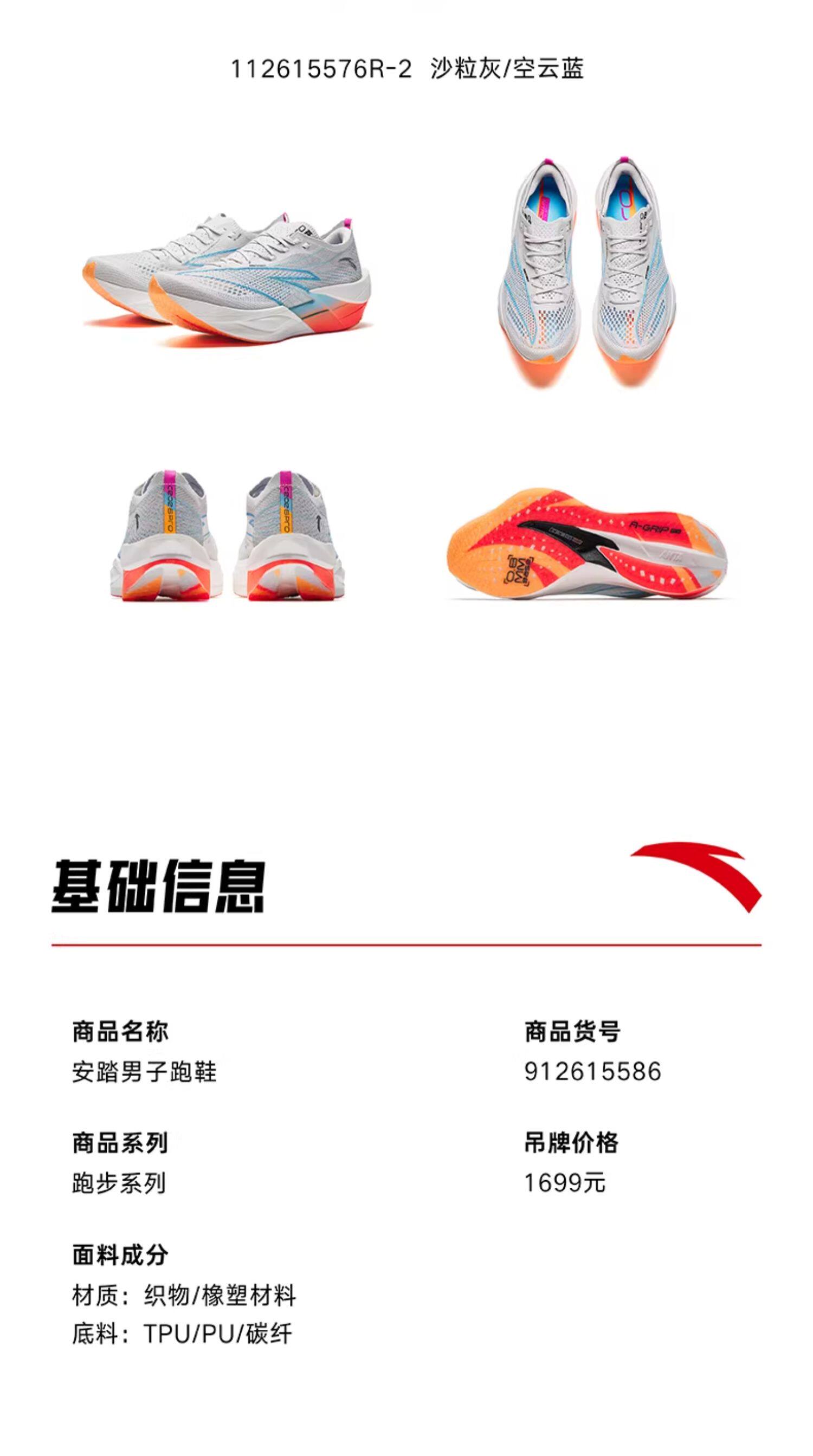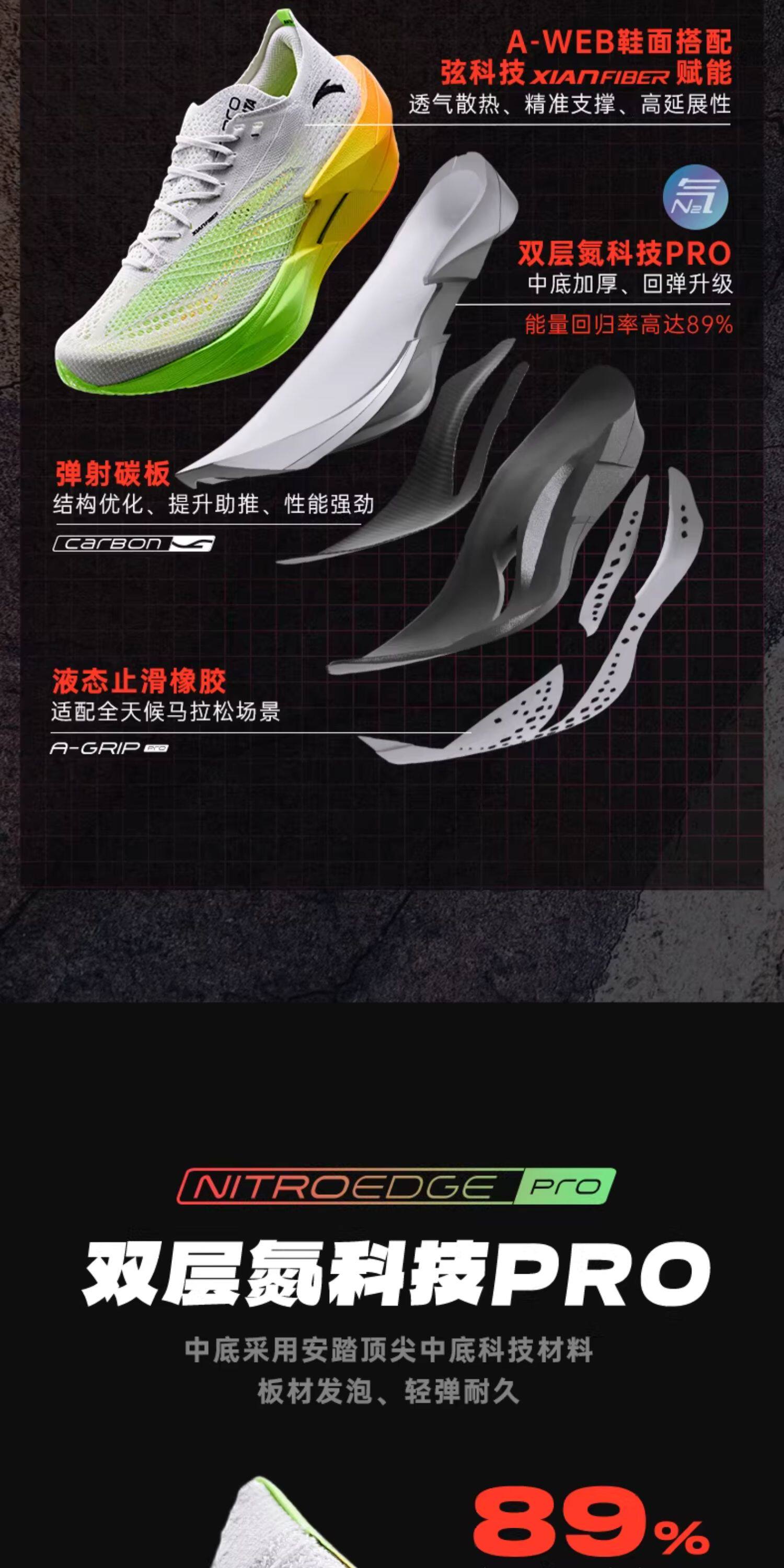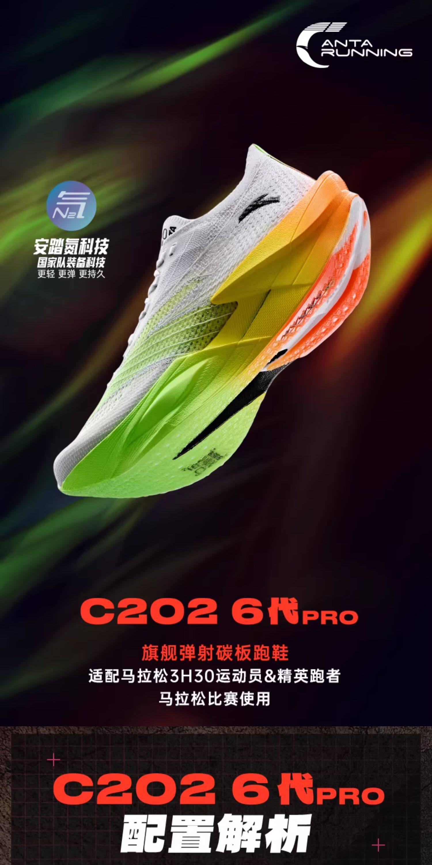 安踏C202 6代 PRO丨专业碳板跑鞋新款男减震防滑运动鞋112615576R