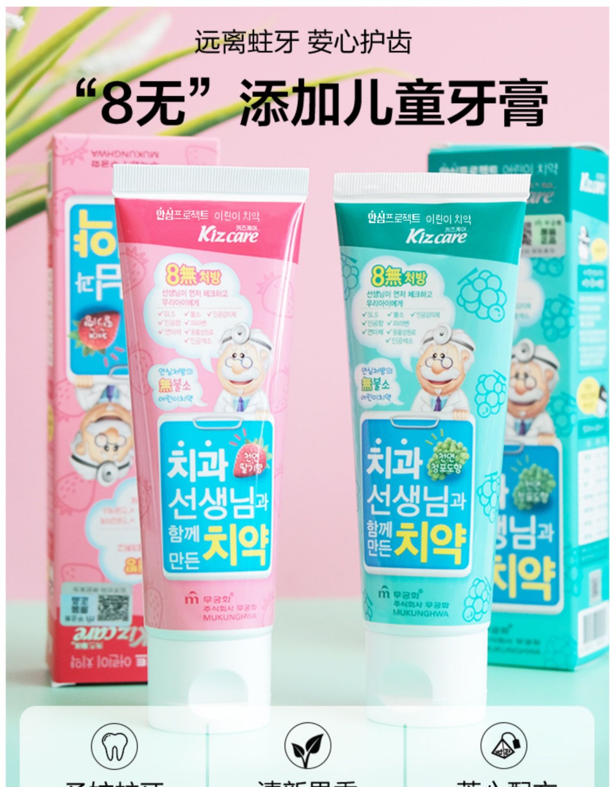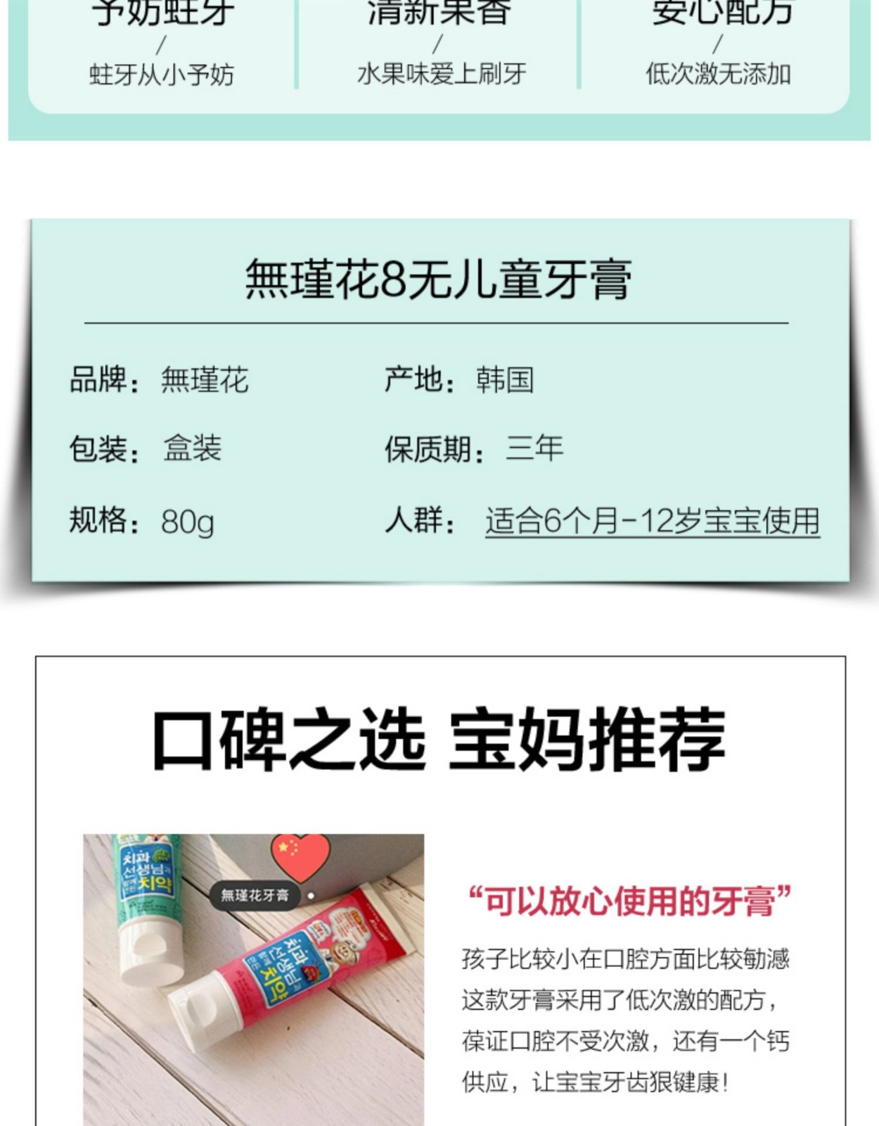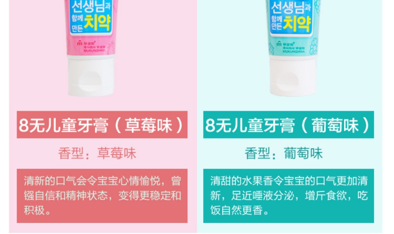 無瑾花 8无儿童清洁牙膏草莓/葡萄味 80g/支