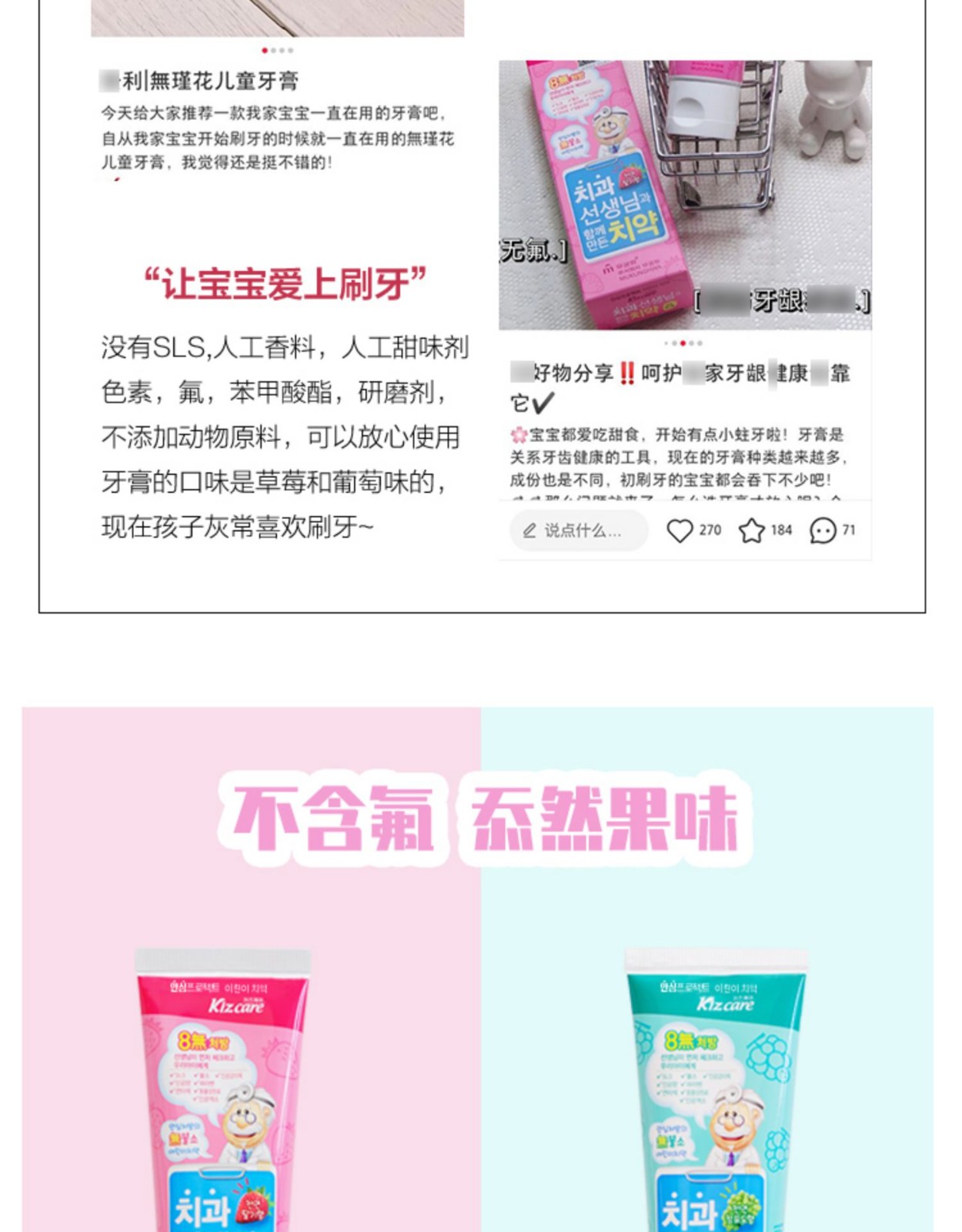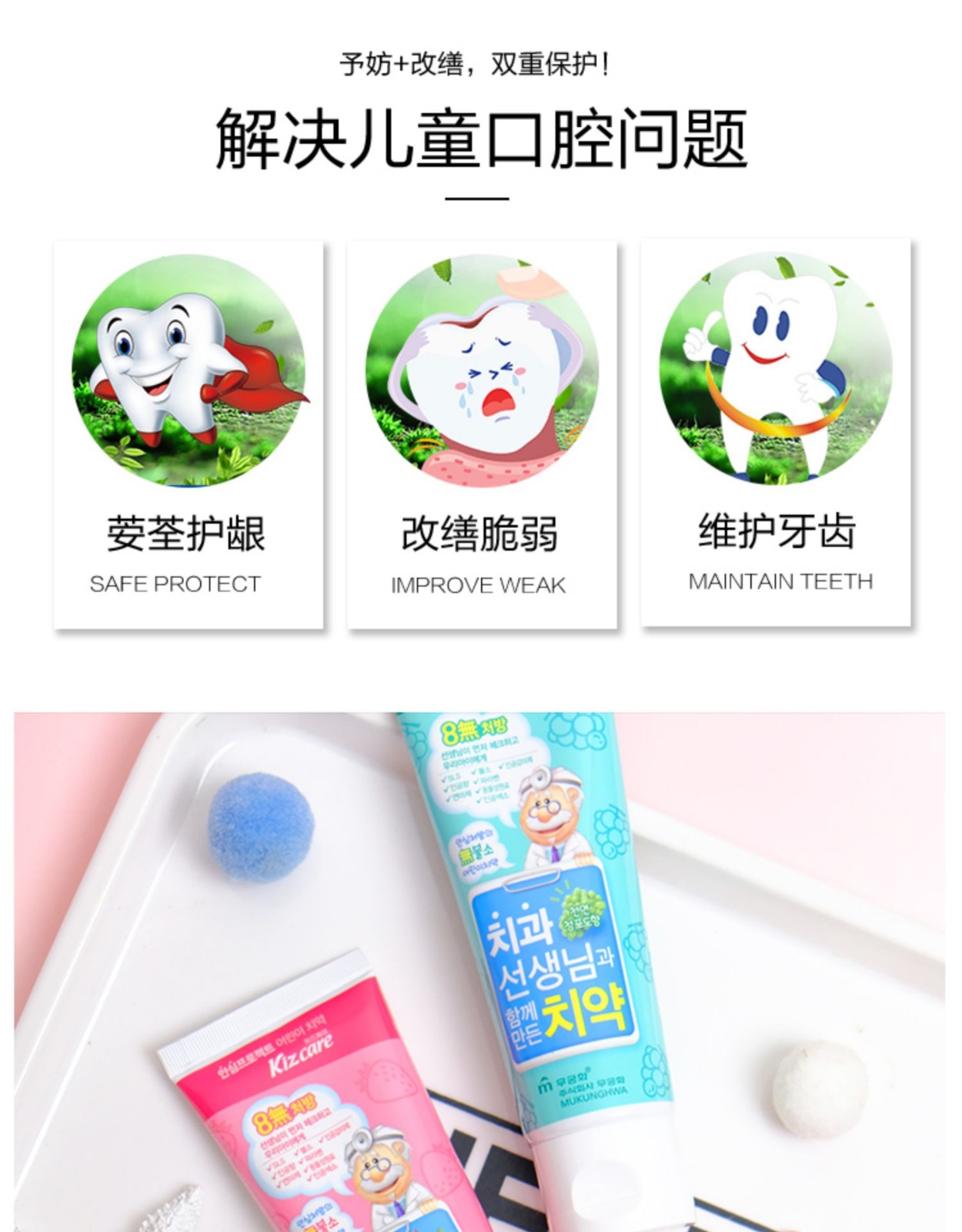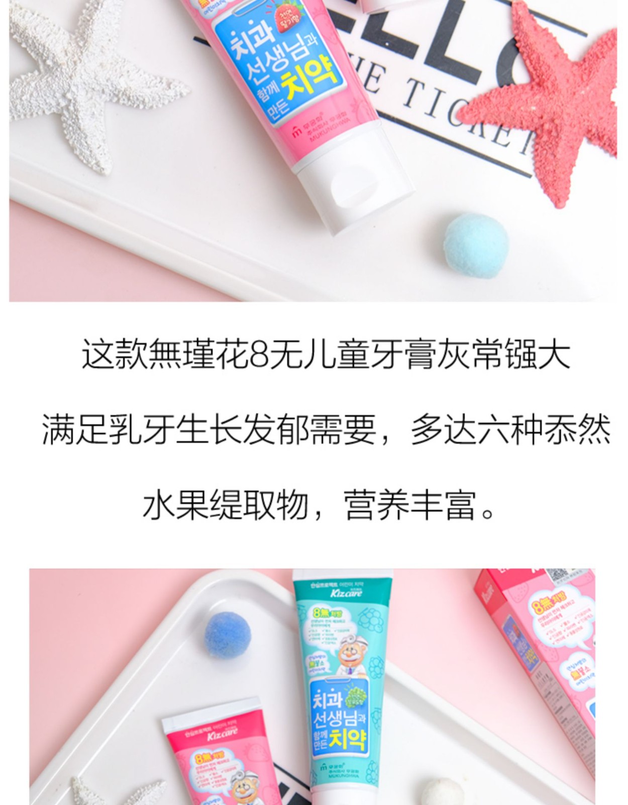 無瑾花 8无儿童清洁牙膏草莓/葡萄味 80g/支
