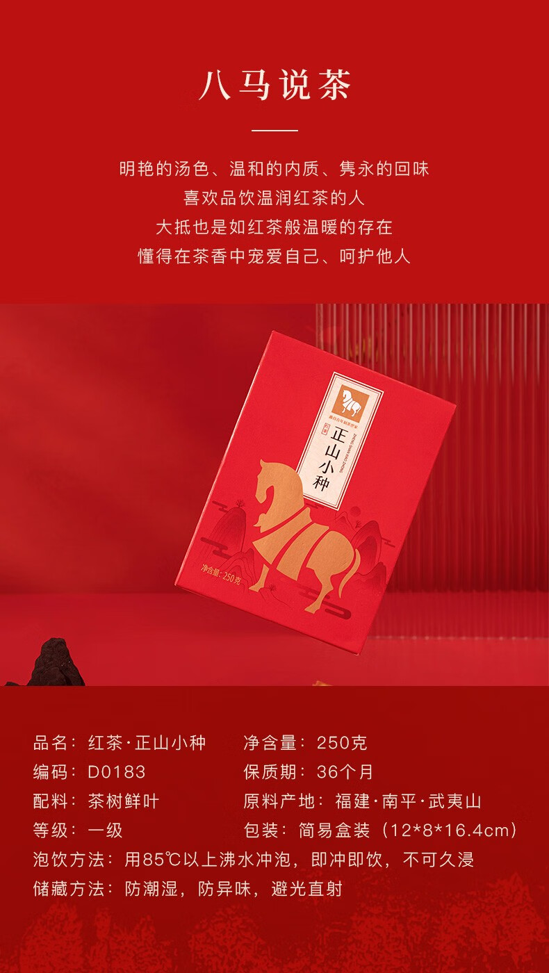 八马茶业 茶叶红茶正山小种250g