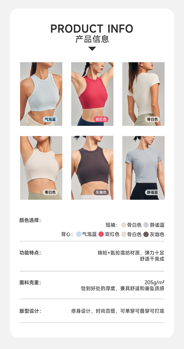 【leleorange】女士螺纹高领口瑜伽背心&T恤