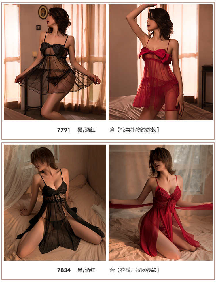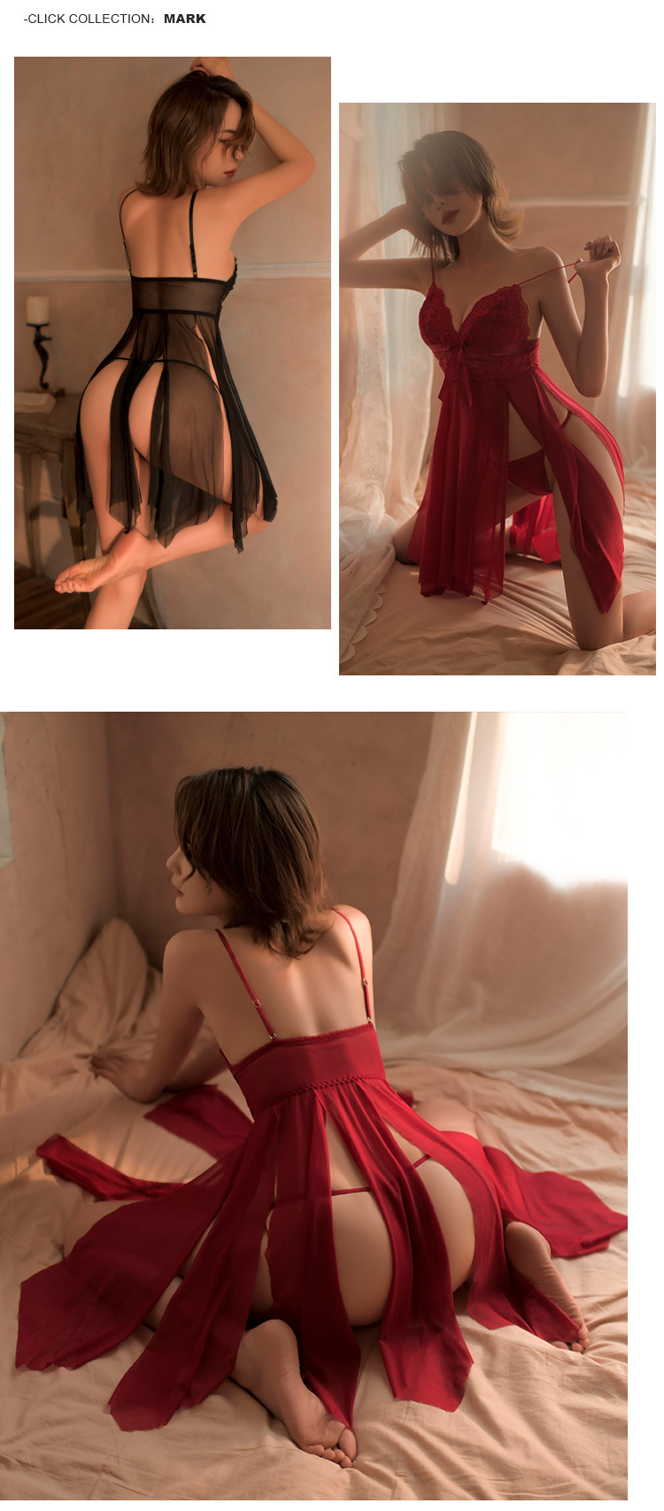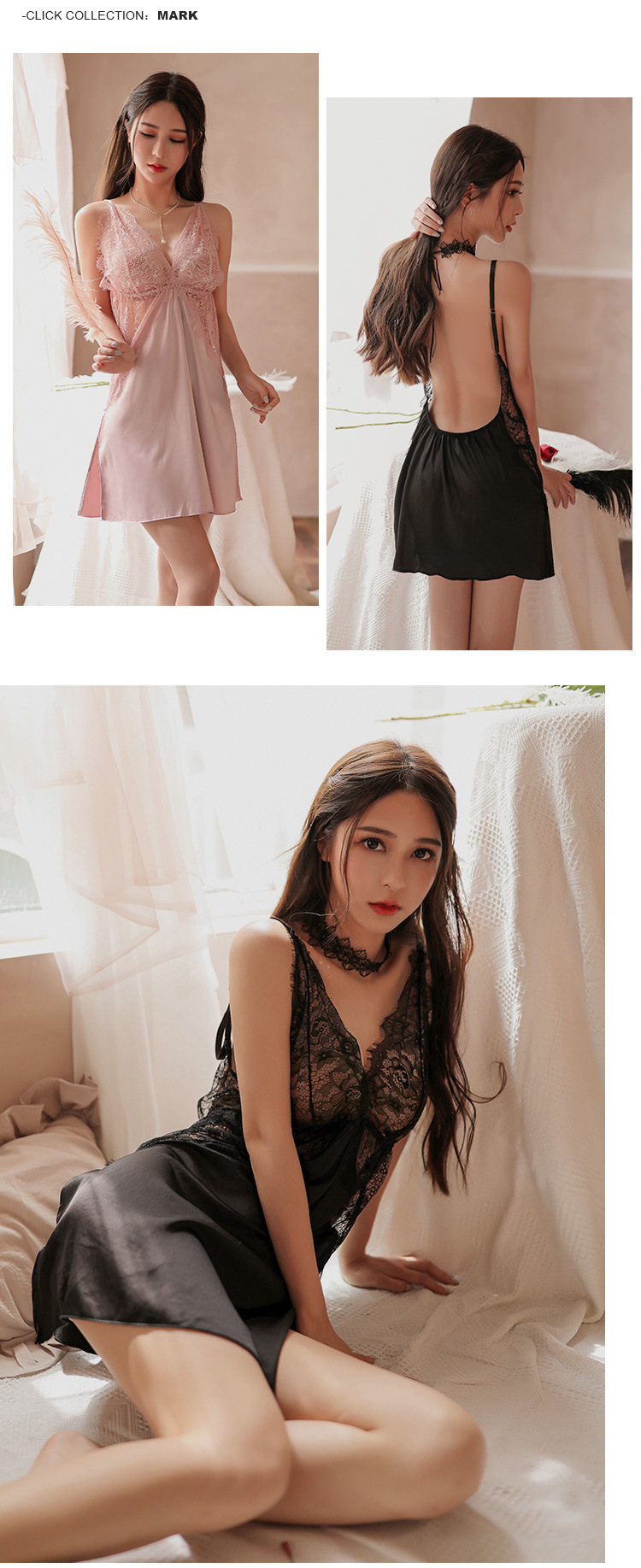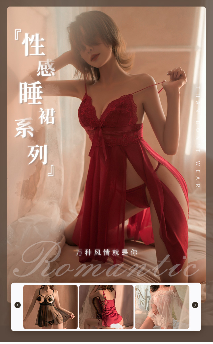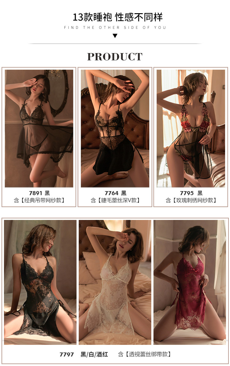 【情趣内衣】霏慕深V透视蕾丝性感睡裙7891