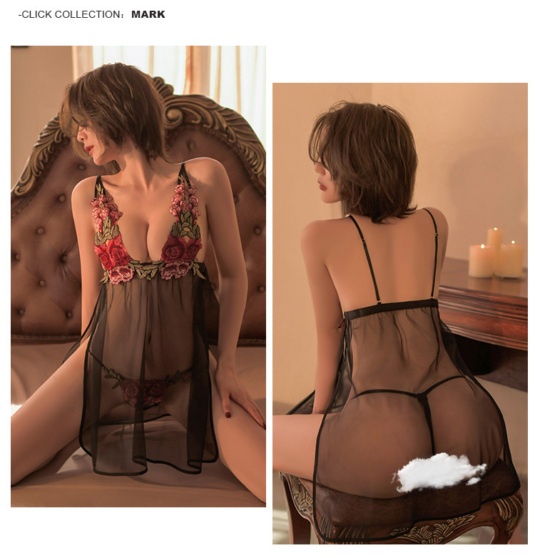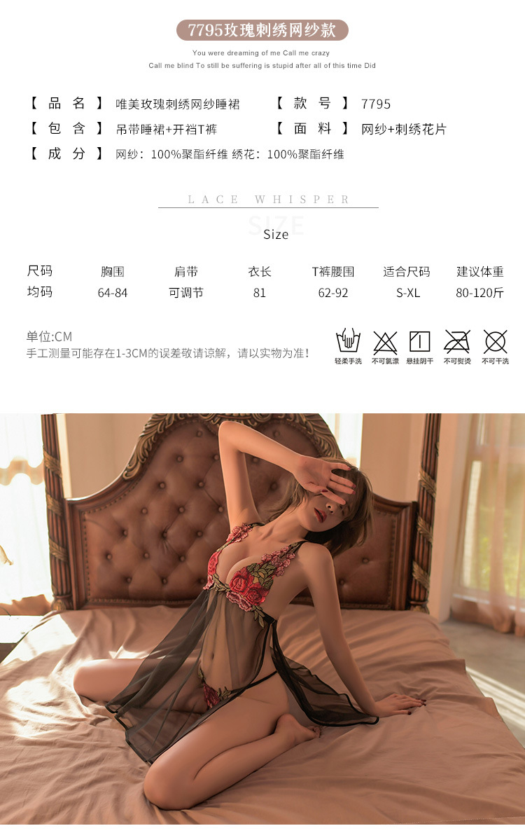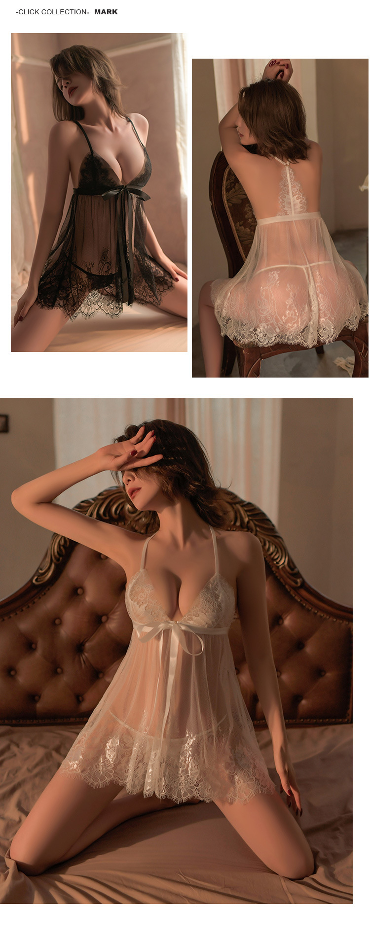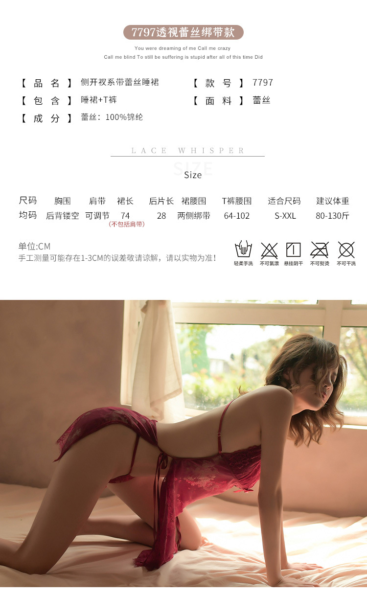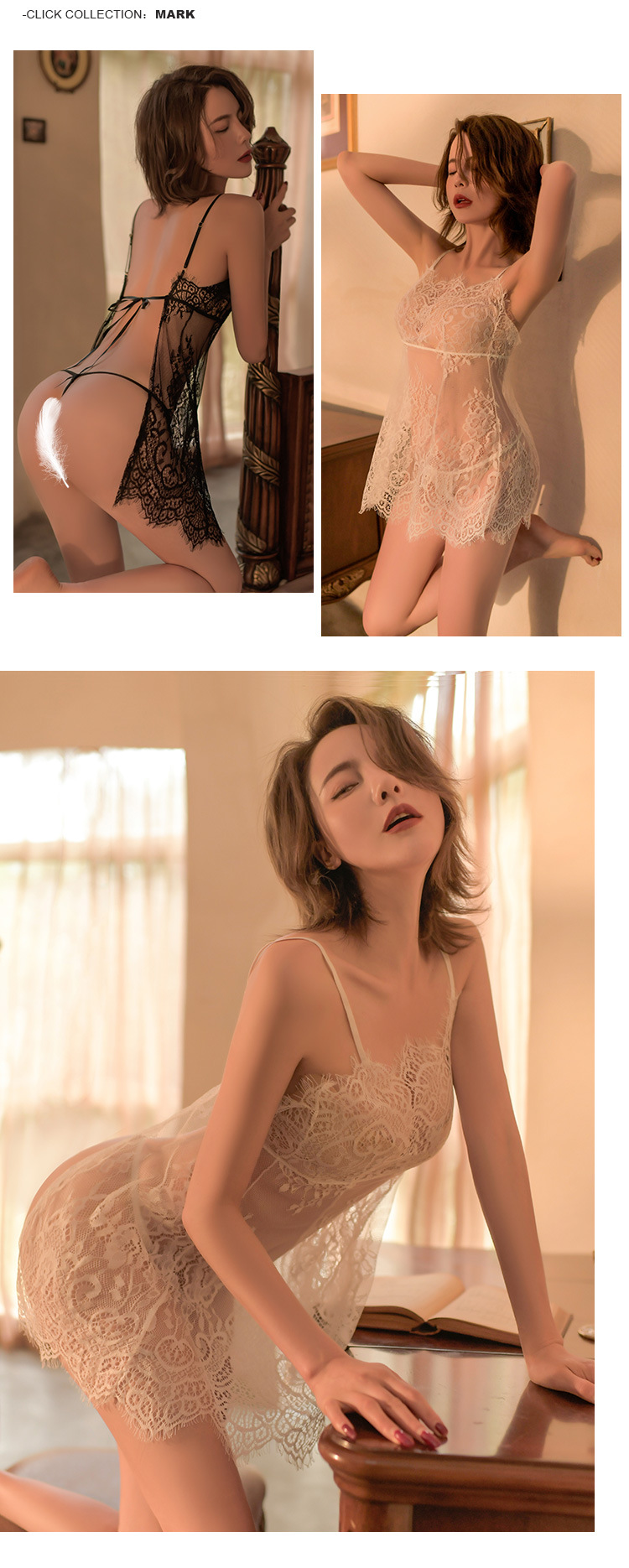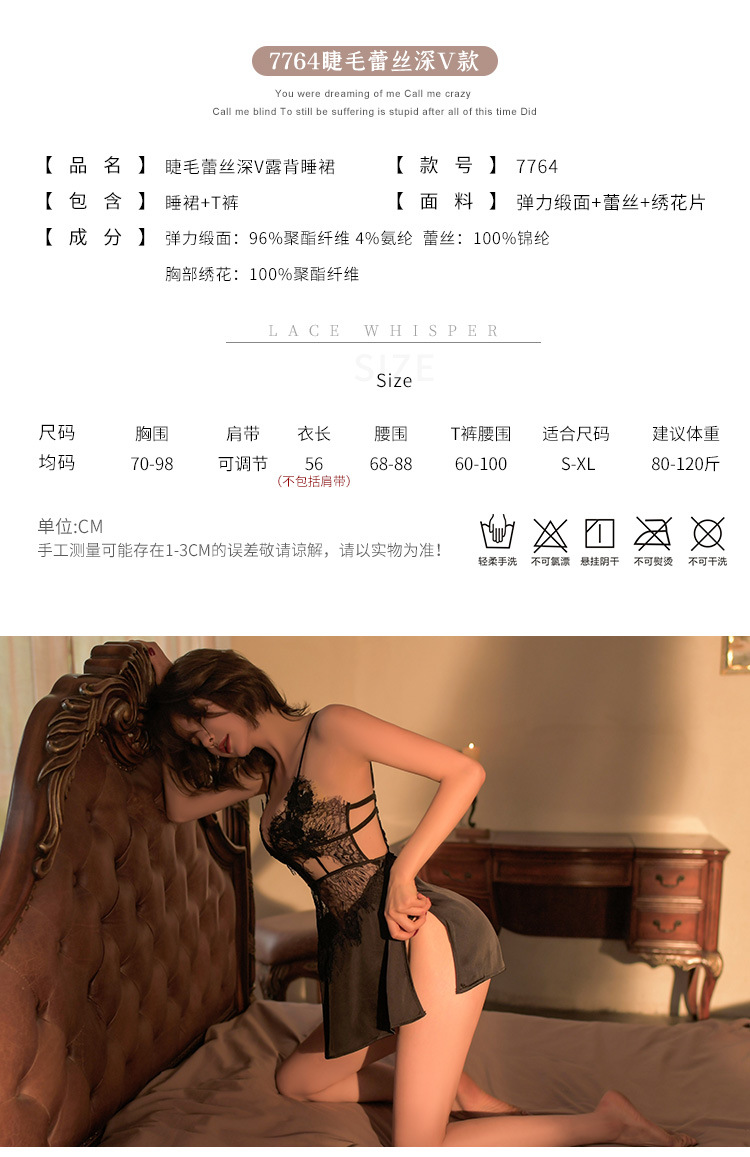 【情趣内衣】霏慕深V透视蕾丝性感睡裙7891