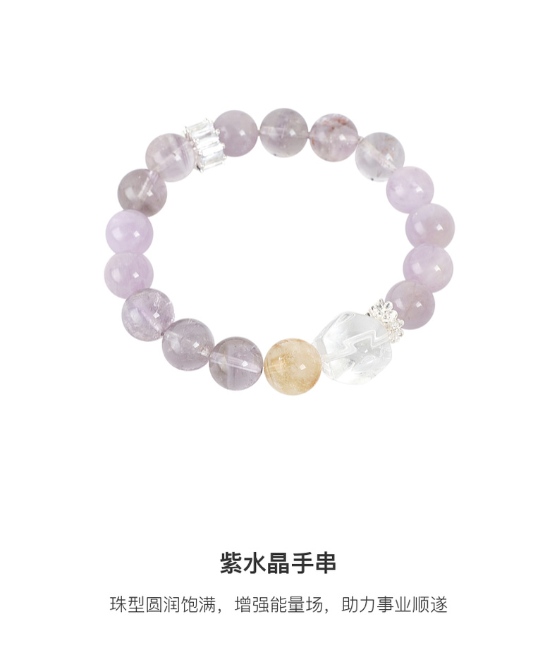 三彩2026新款新中式雾山紫手链紫水晶手串串珠轻奢小众送礼浪漫