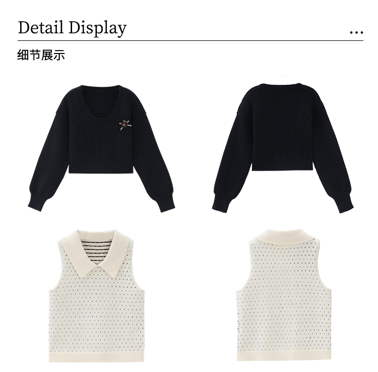 鹿向南「心动日」法式气质针织毛衣背心吊带秋冬新款真两件套女DYL662196/DYL662195
