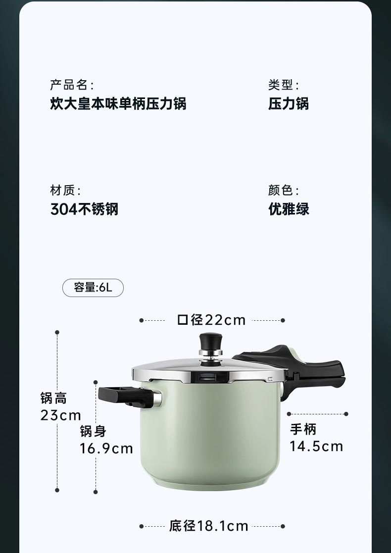 炊大皇本味单柄压力锅24cm(优雅绿)(配锅盖)