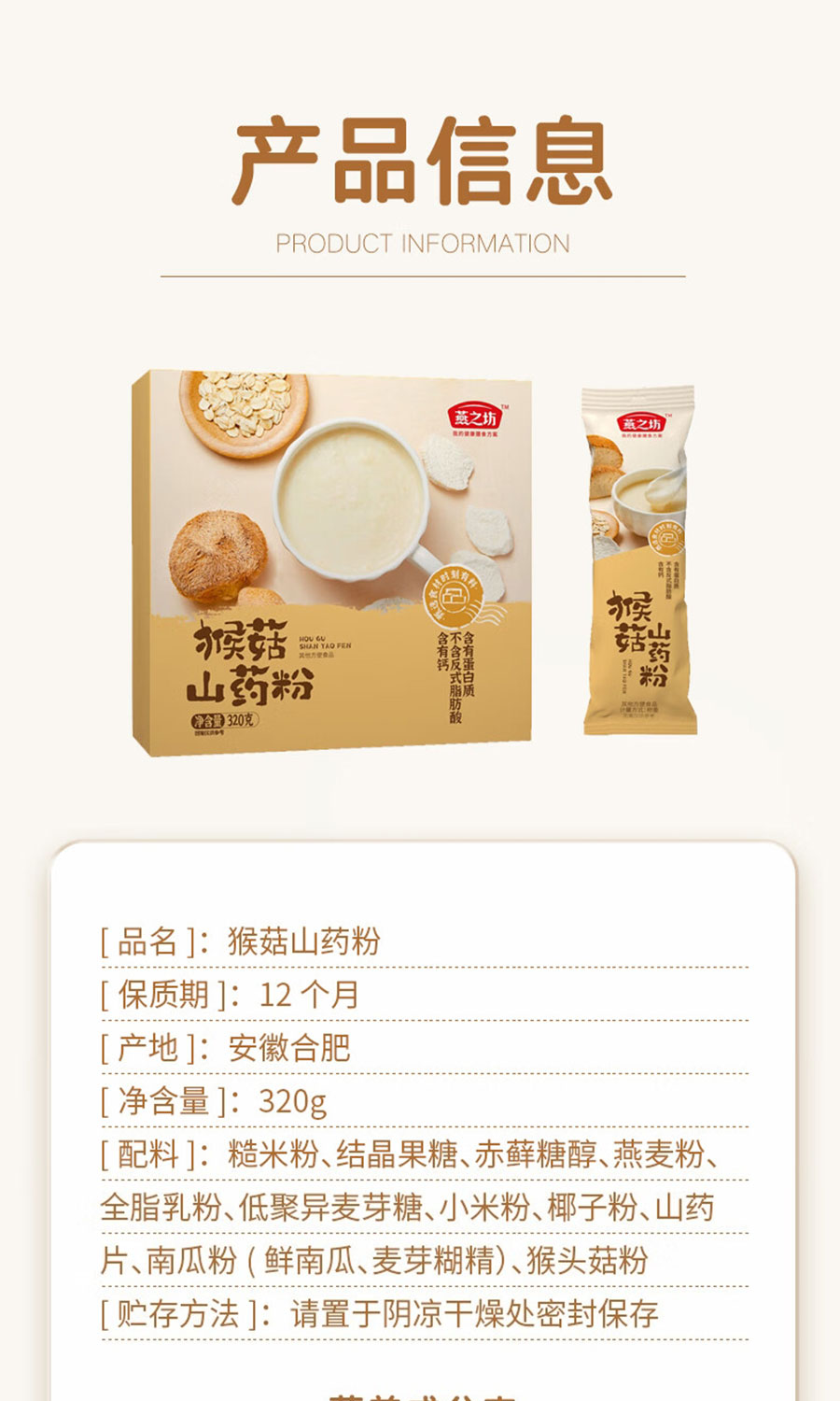 燕之坊 猴菇山药粉 320g 五谷杂粮粗粮粉