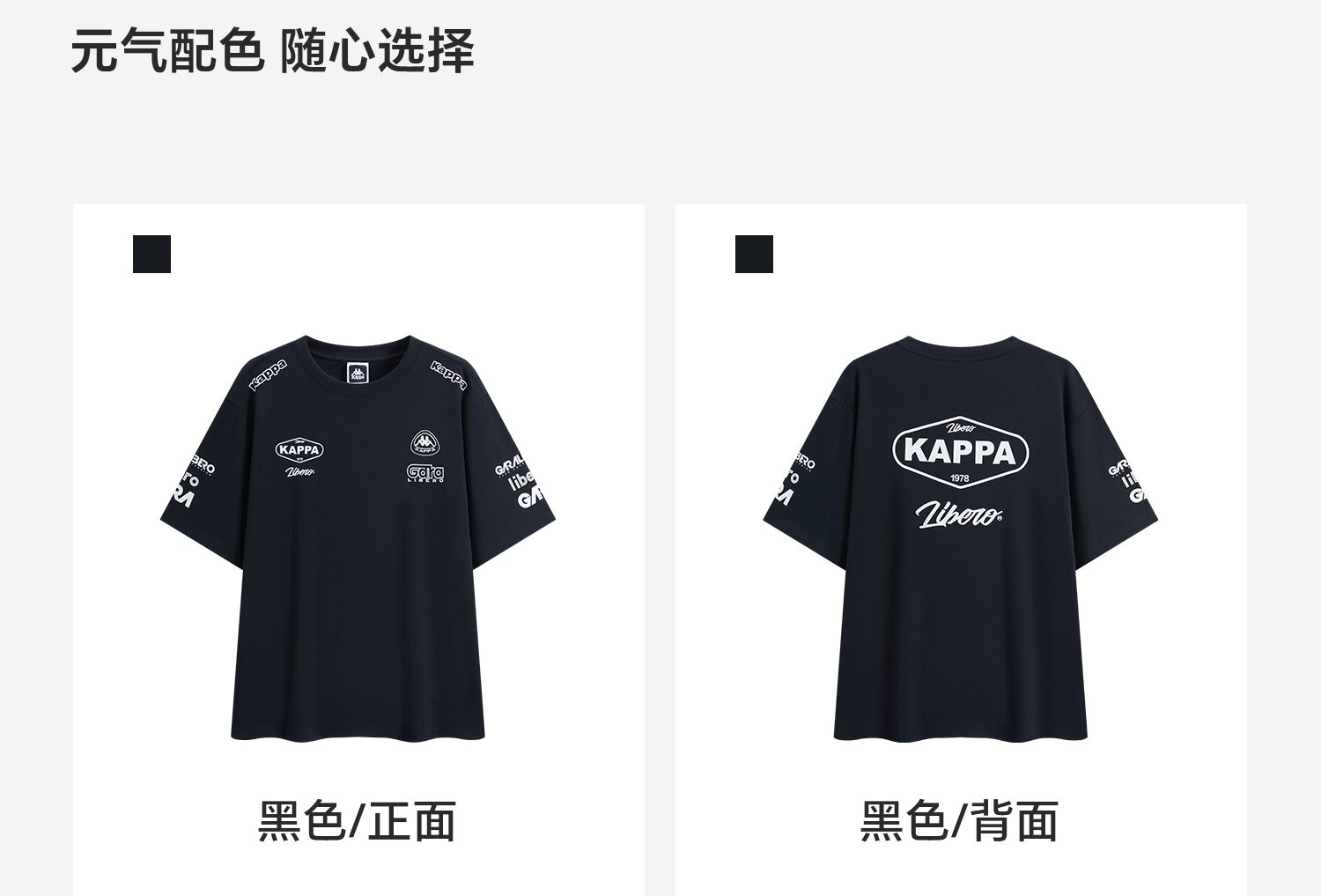 Kappa卡帕背靠背运动短袖男士2025夏季新款休闲纯棉t恤宽松上衣女KPCGCTD73