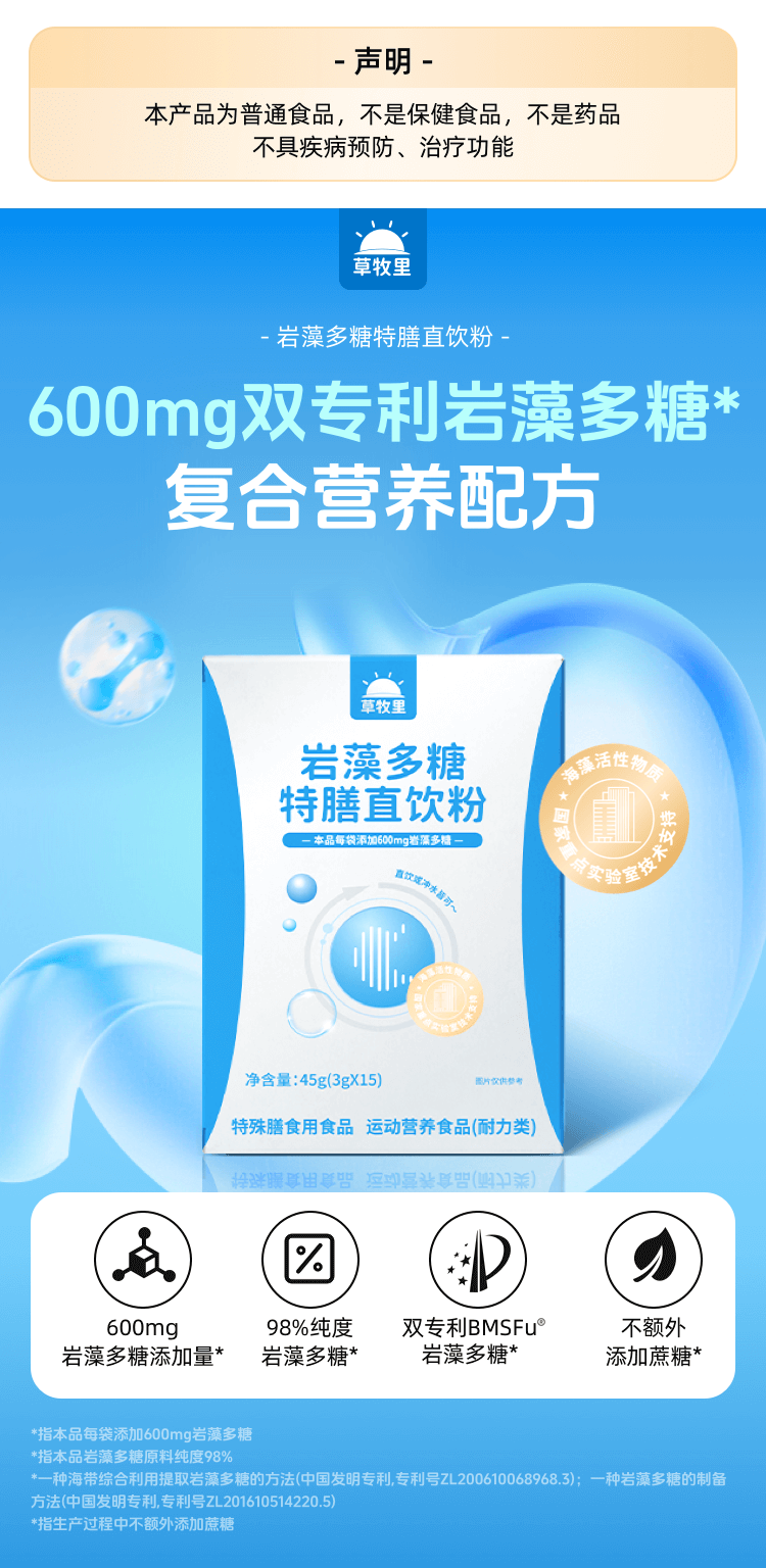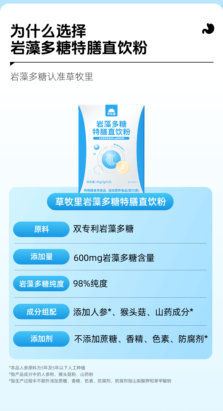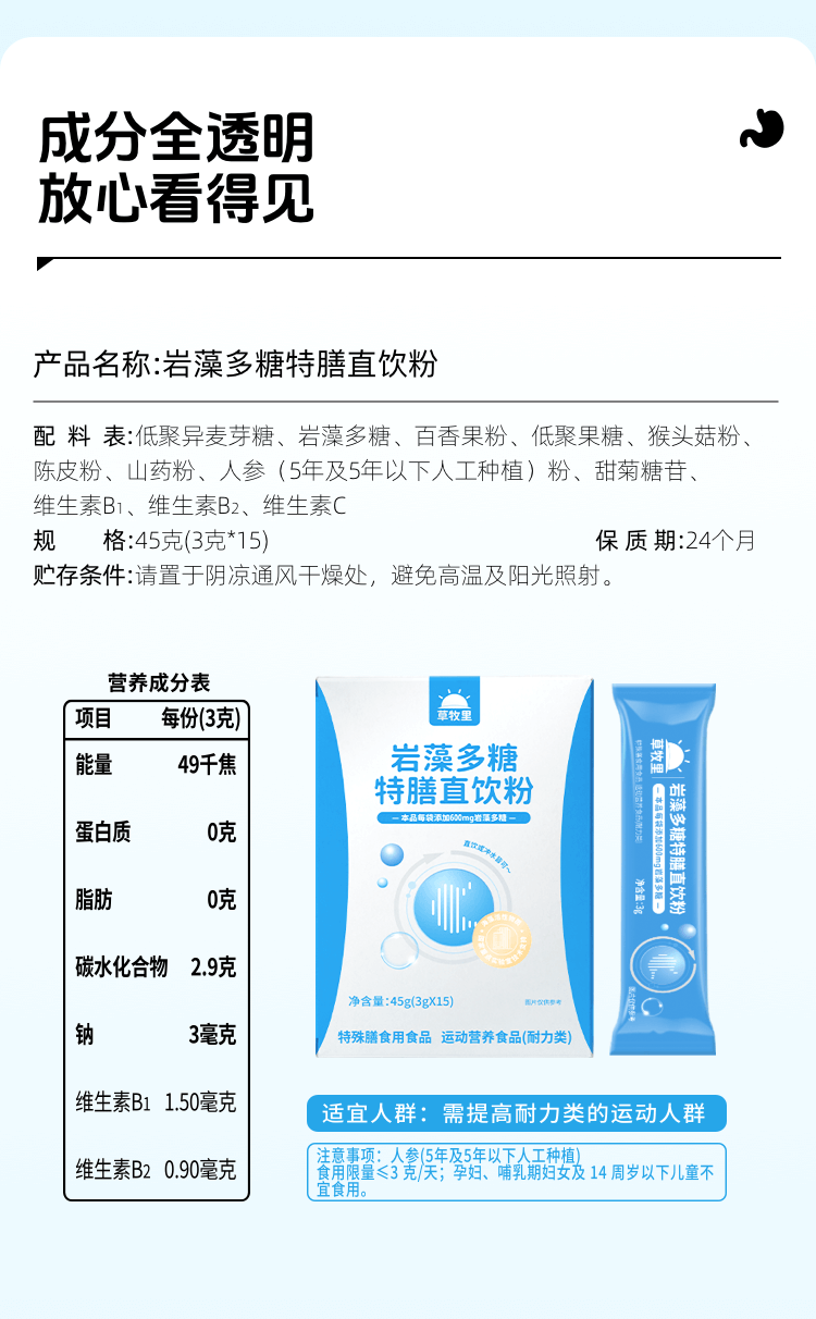 【每日1杯】草牧里 岩藻多糖特膳直饮粉 45g(3g*15)/盒