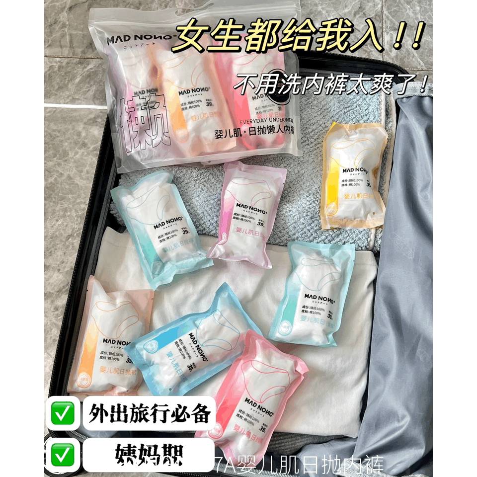 🏖️💢出游季刚需【MAD NONO7A婴儿肌日抛内裤】 旅行出差住校生姨妈期 🔺7Ak jun技术,干净安全开袋即穿 ⭐ 柔韧耐用,均码80-150斤可穿