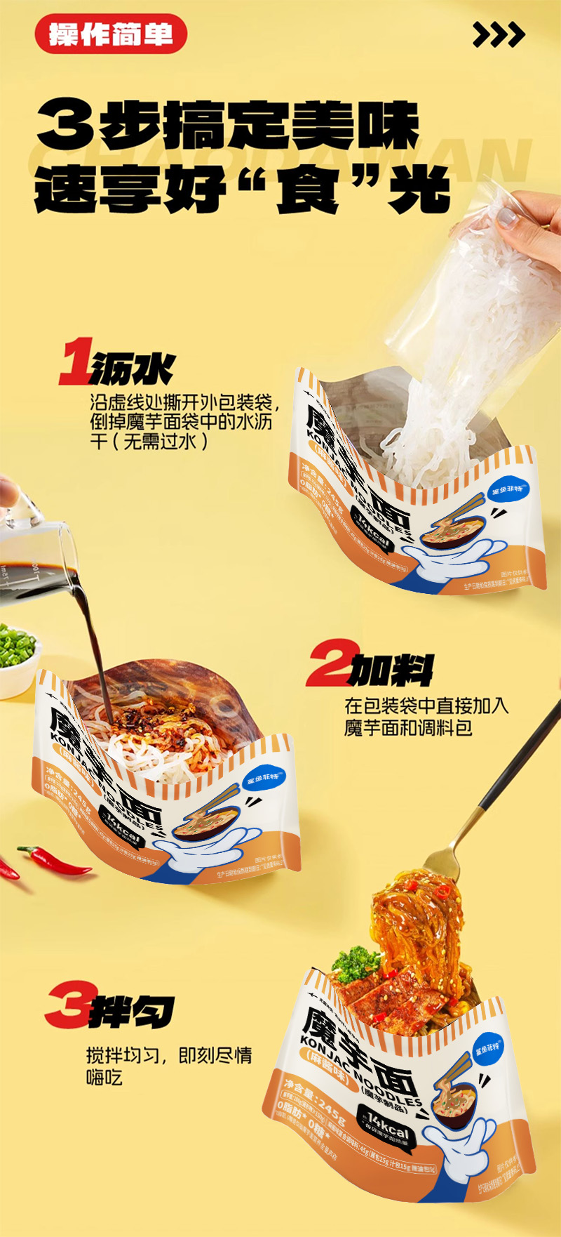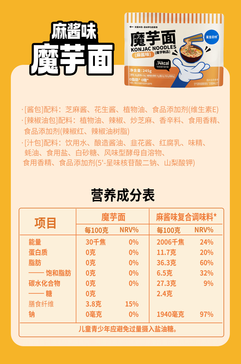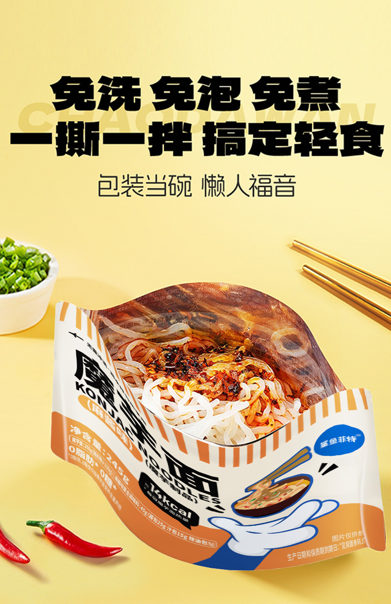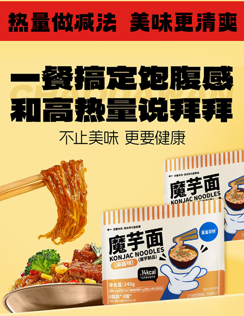 【鲨鱼菲特300-200】麻酱味魔芋面0脂低卡袋装懒人方便速食解馋饱腹代餐健身