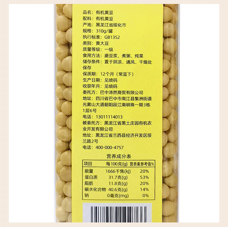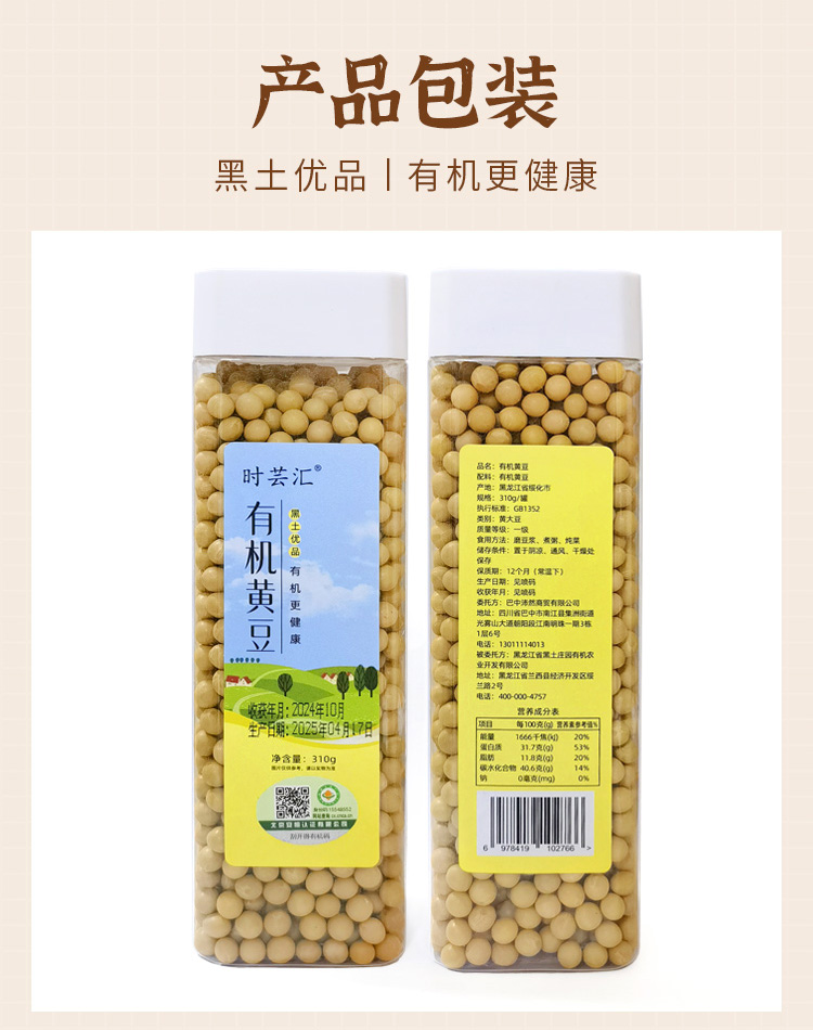 【时芸汇】有机黄豆310g/罐*2 农家自种黄豆粒 打豆浆 东北特产非转基因大豆
