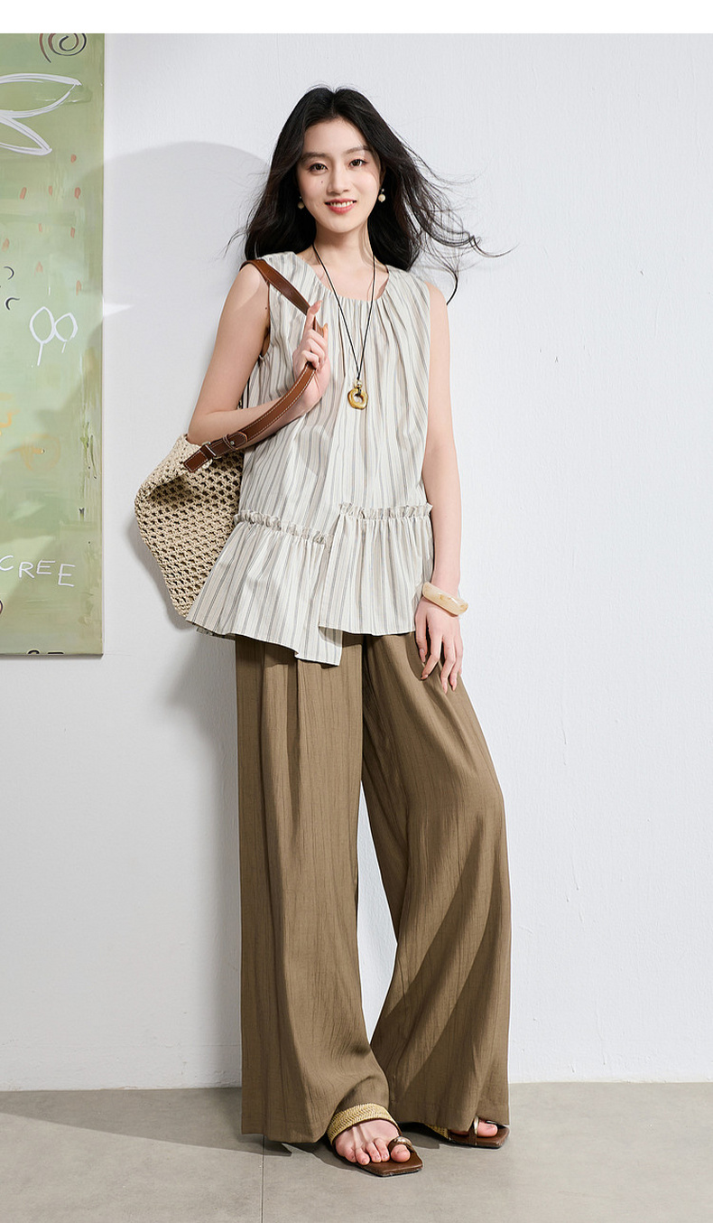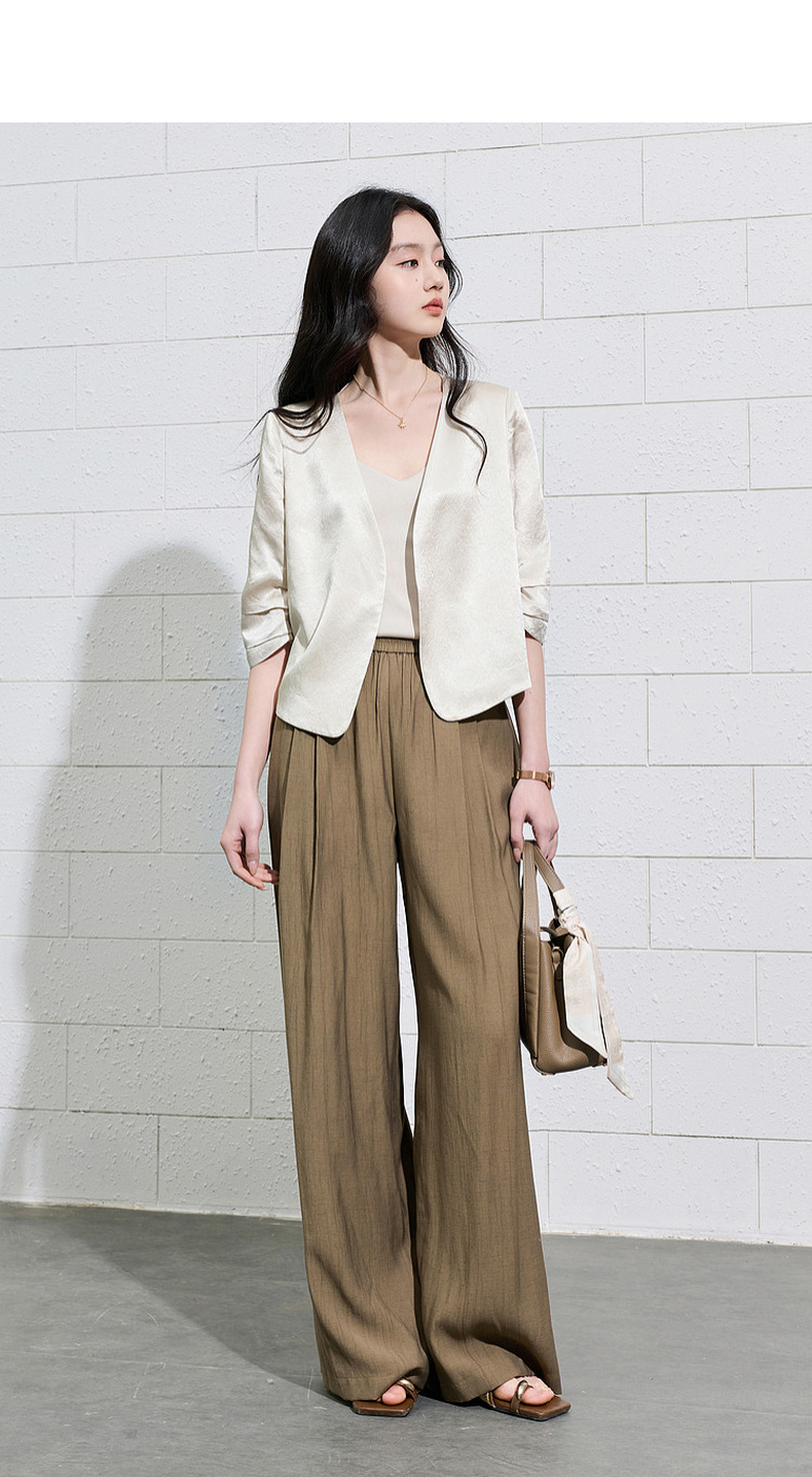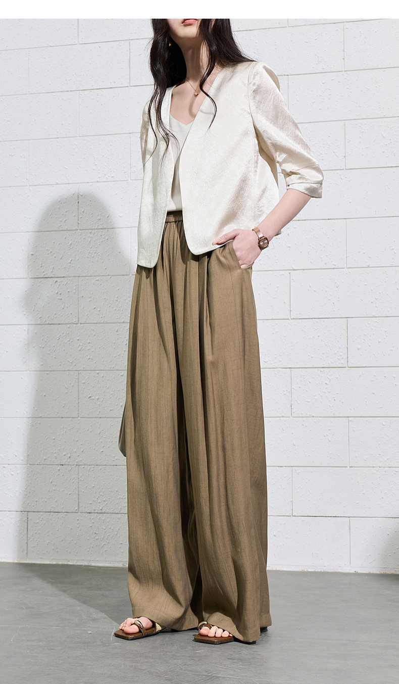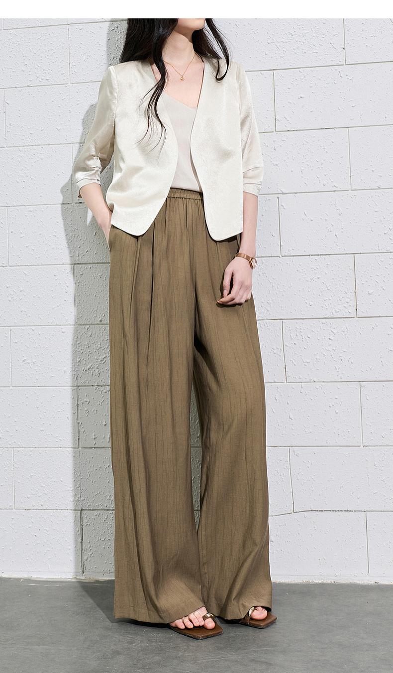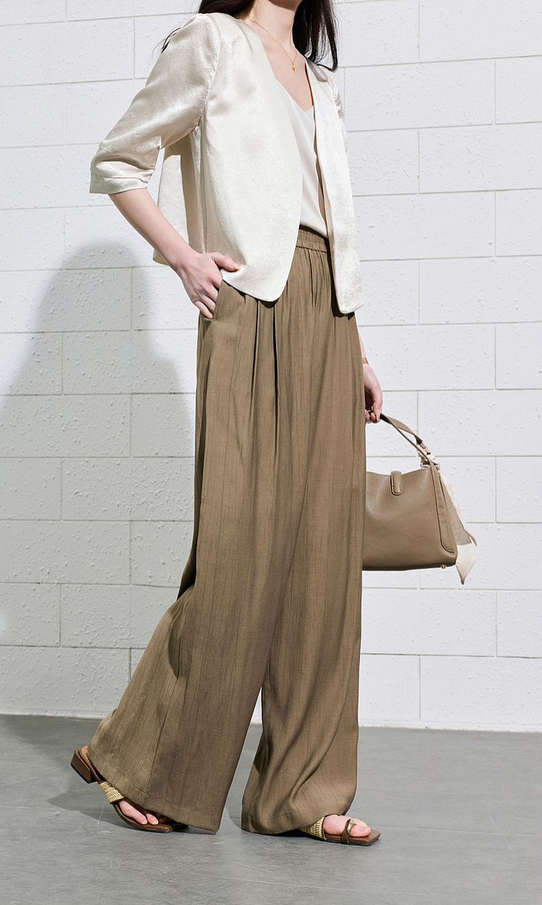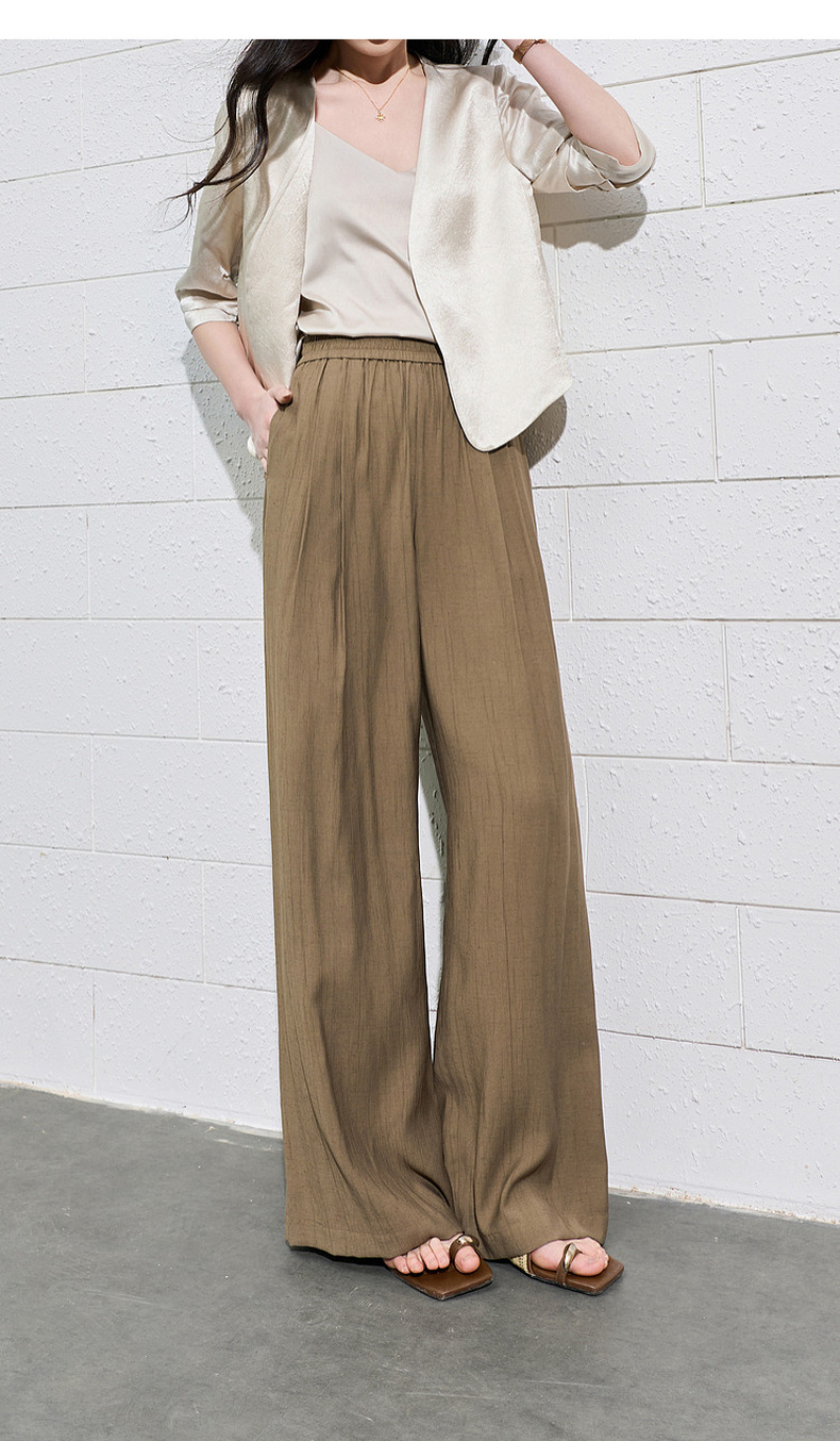 三彩2026夏季新款休闲裤松紧腰阔腿裤宽松长裤简约S