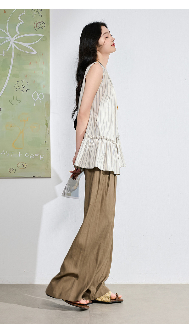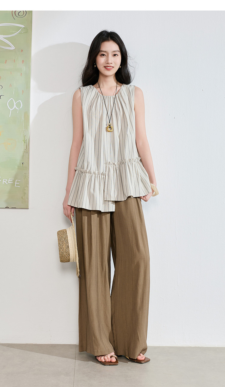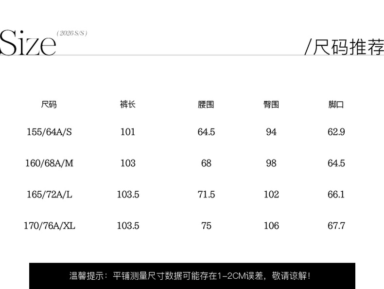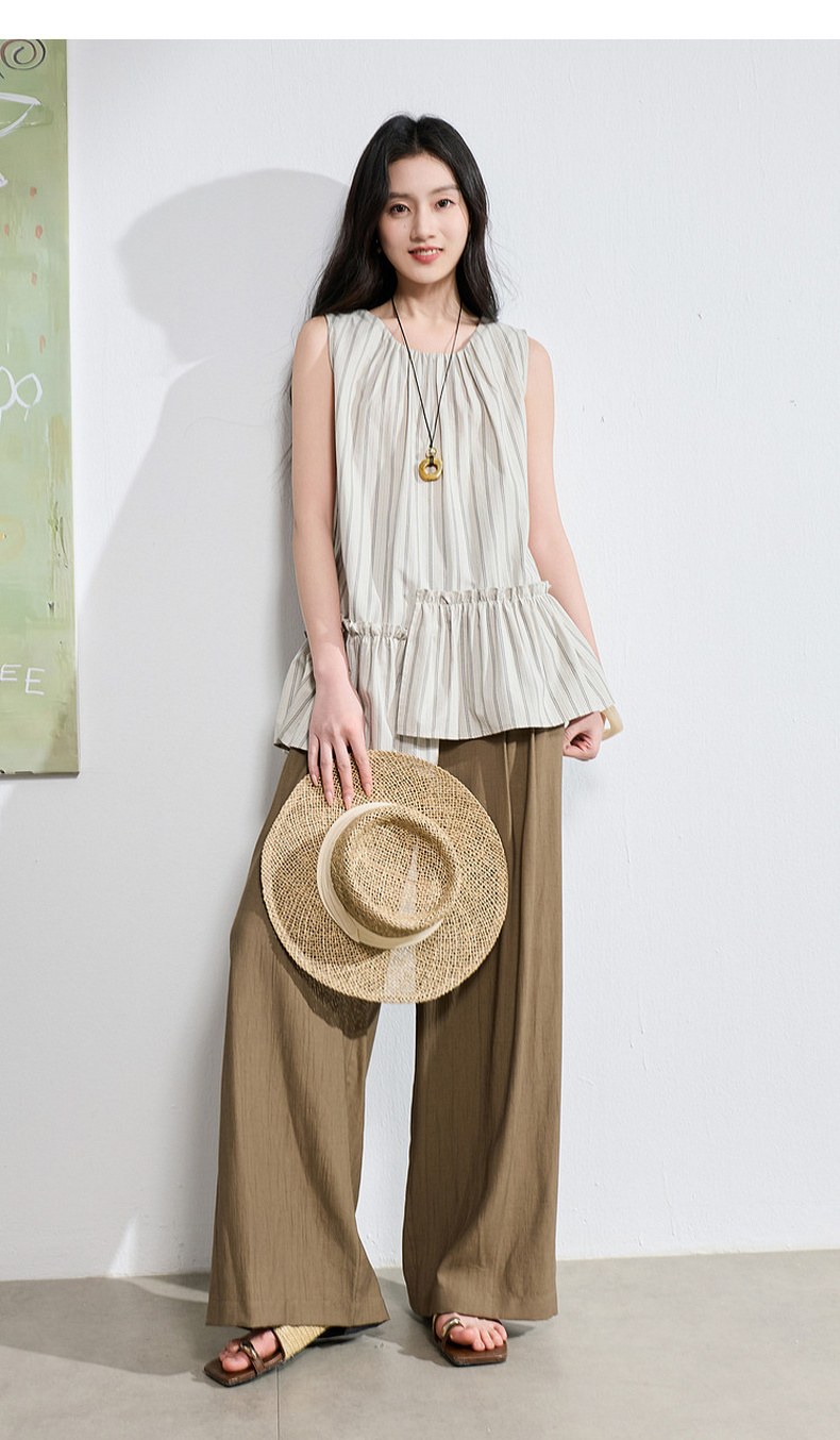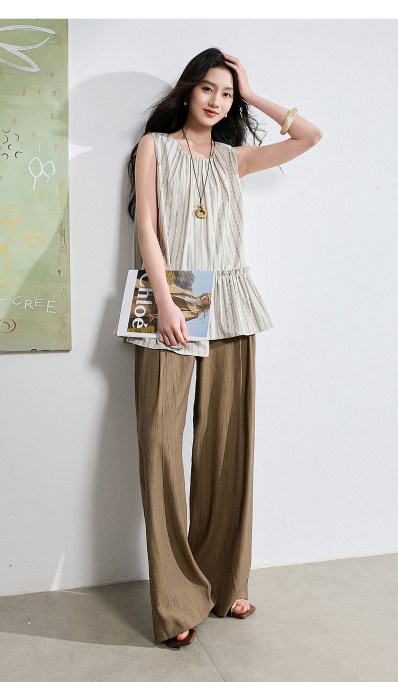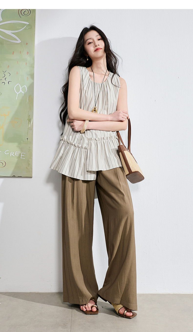 三彩2026夏季新款休闲裤松紧腰阔腿裤宽松长裤简约S