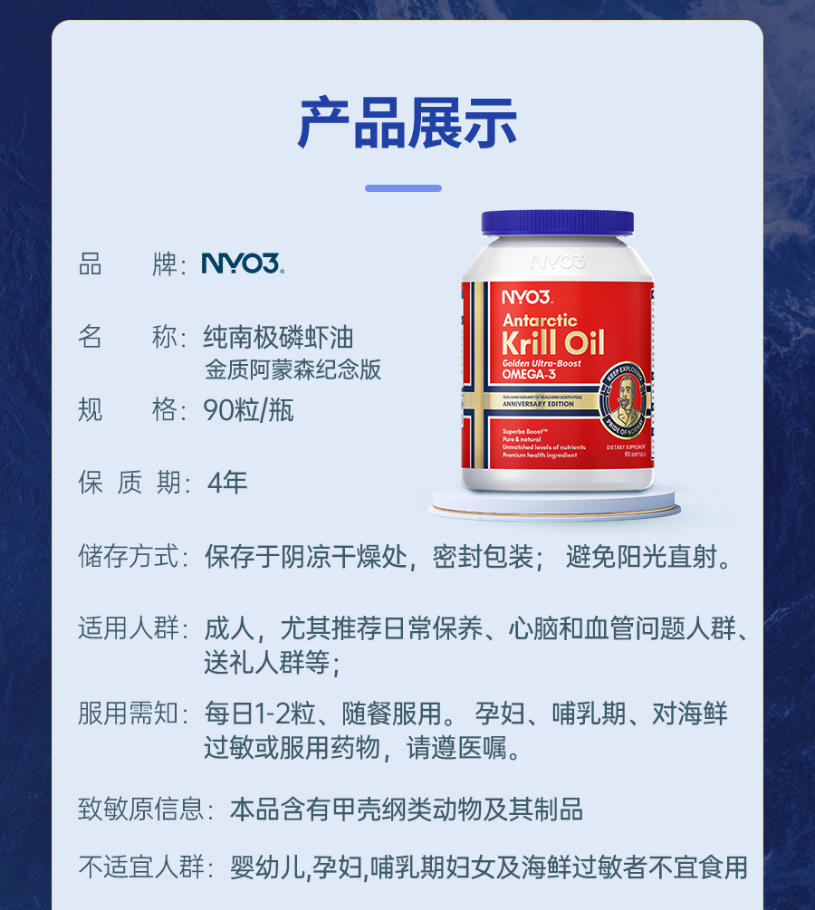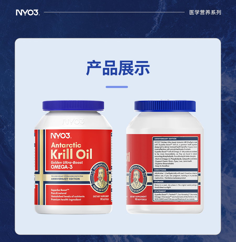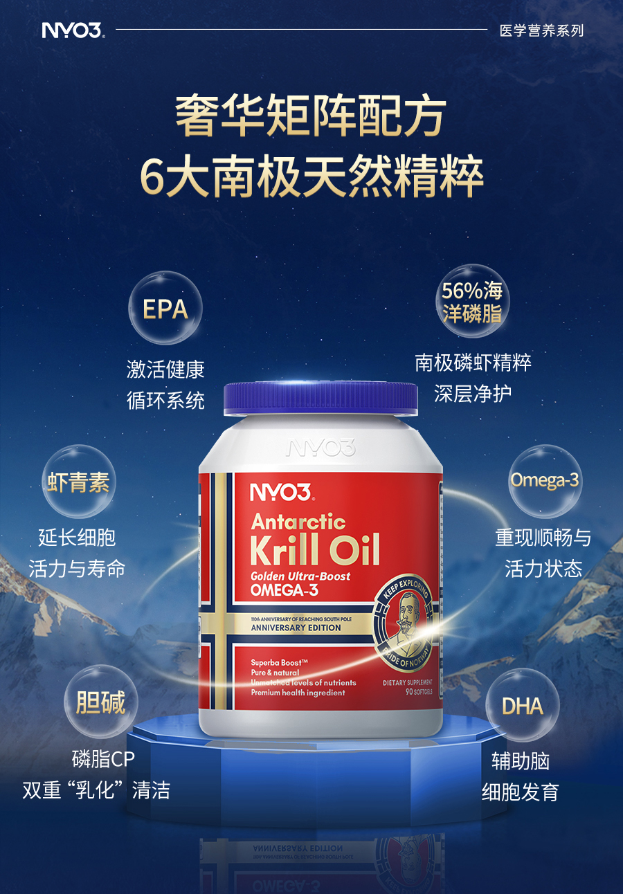 NYO3 金质阿蒙森磷虾油90粒 鱼油升级59%磷脂