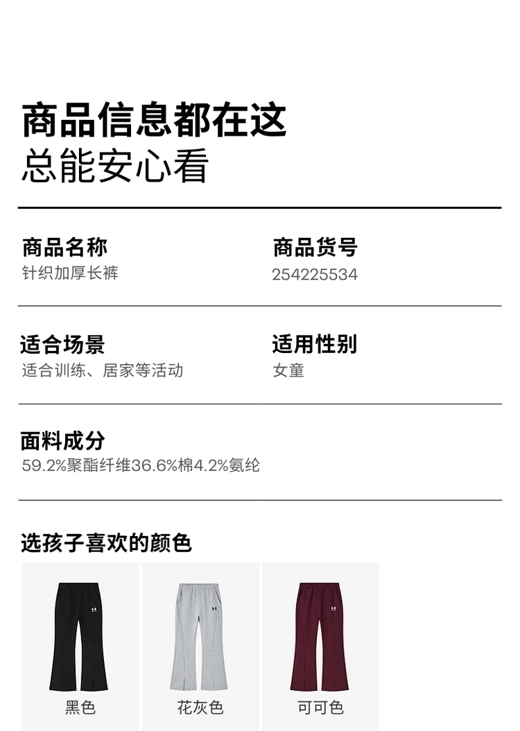 【特惠福利】Under Armour安德玛儿童针织加厚长裤254225534