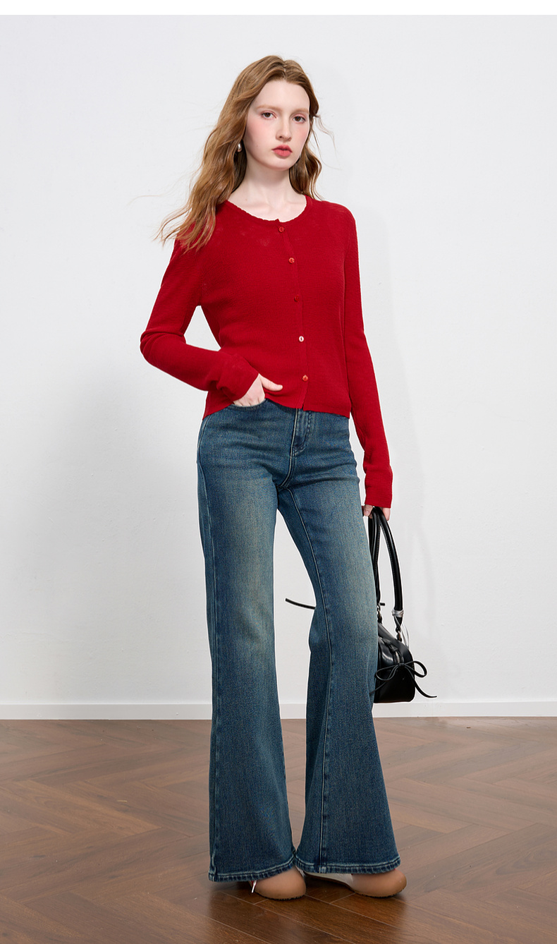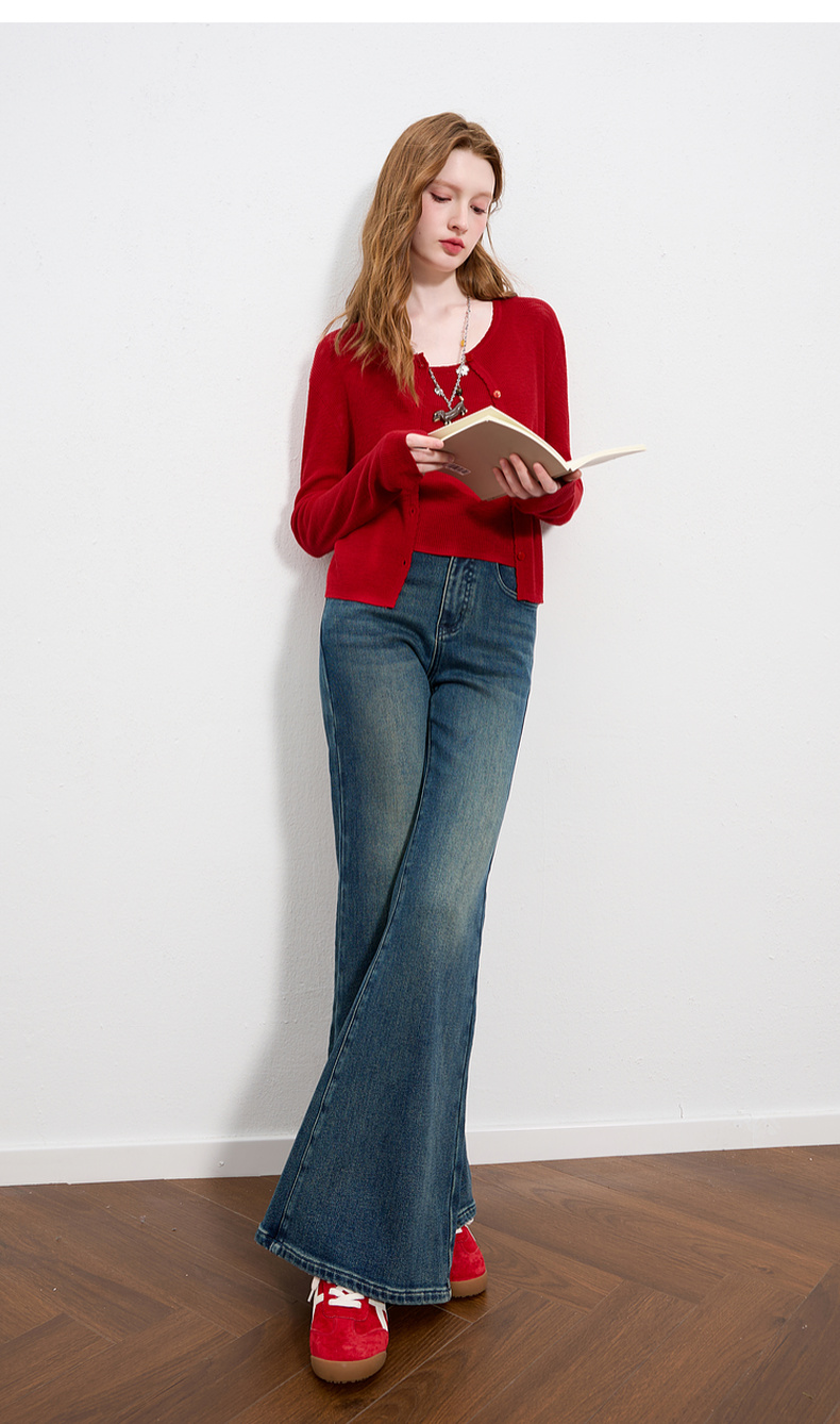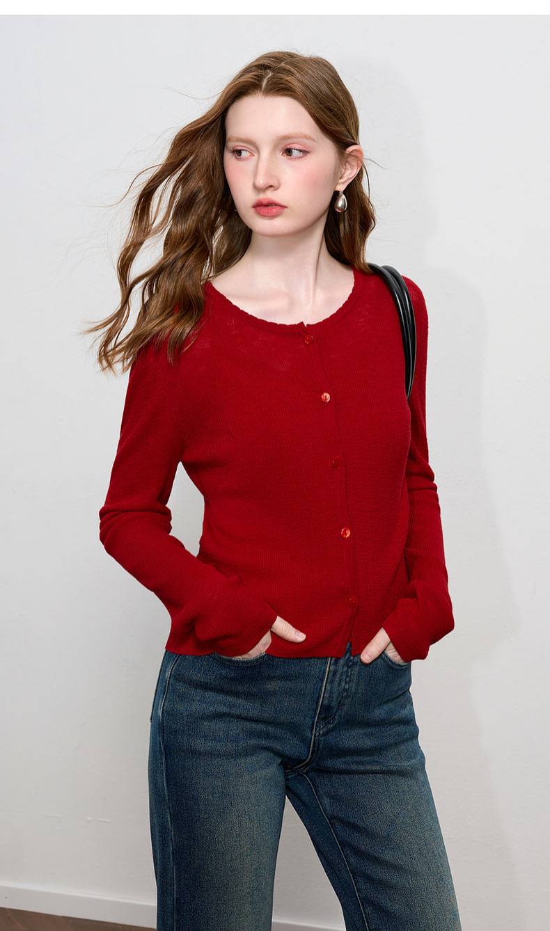 三彩2025秋季新款针织衫套装圆领毛衫开衫修身吊带两件套M