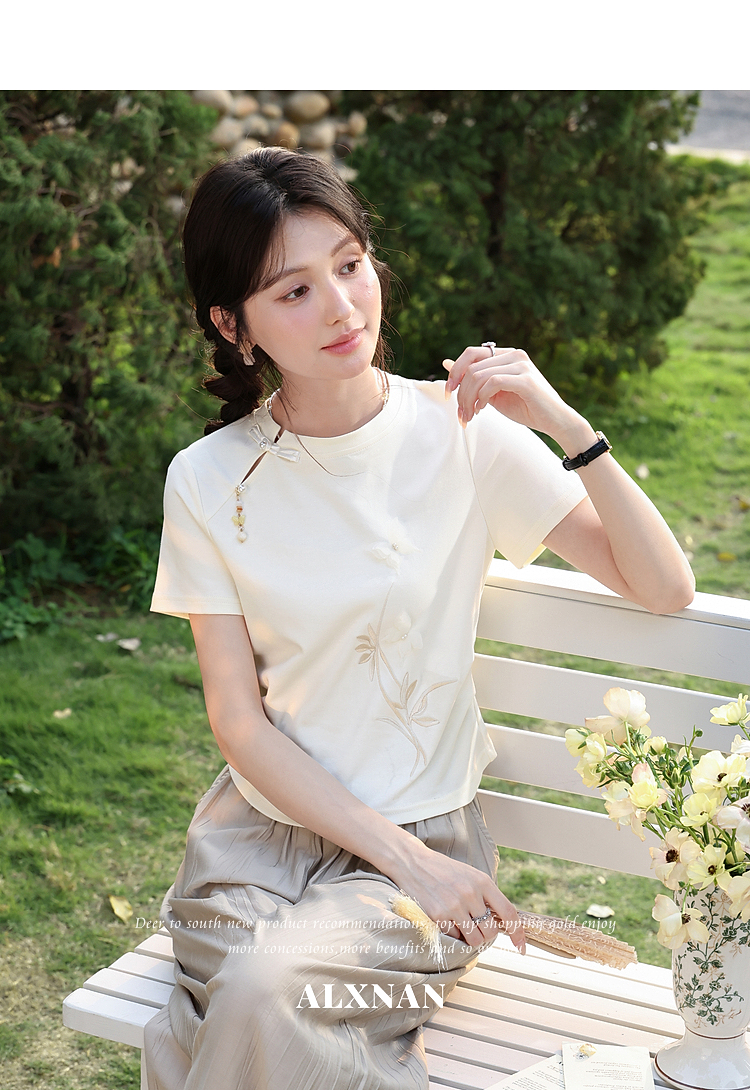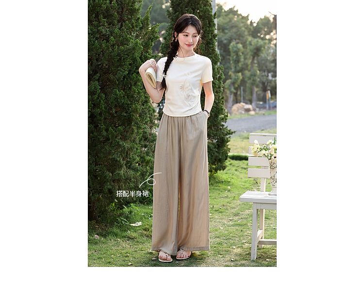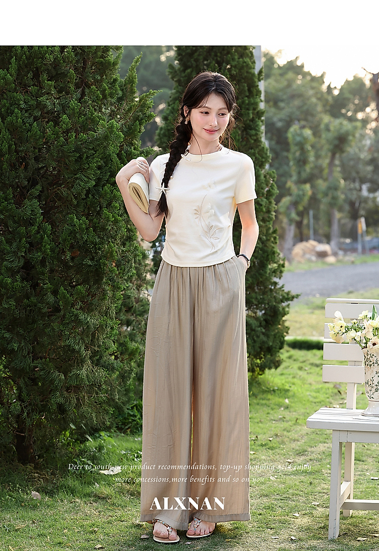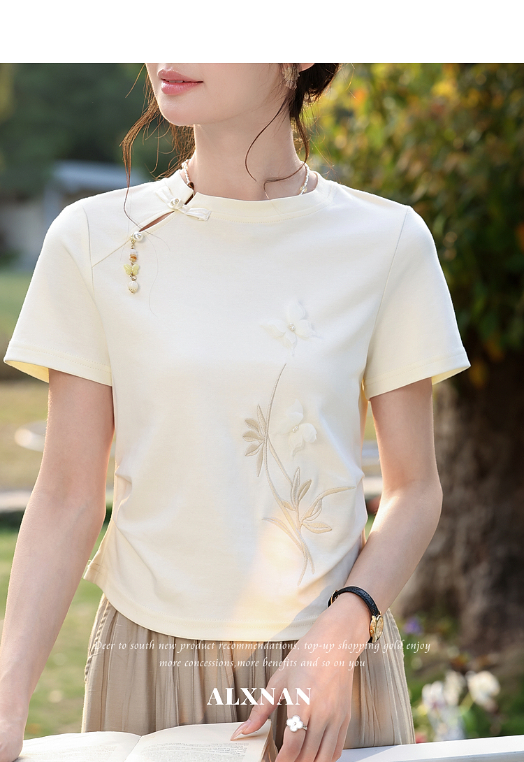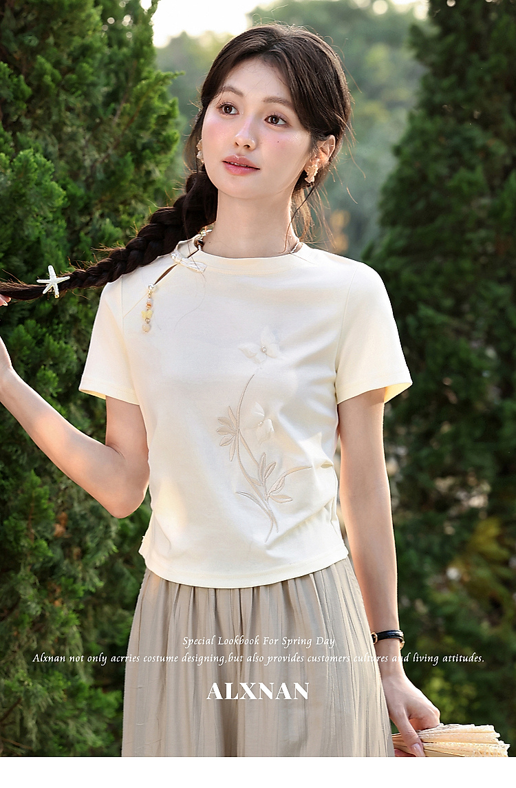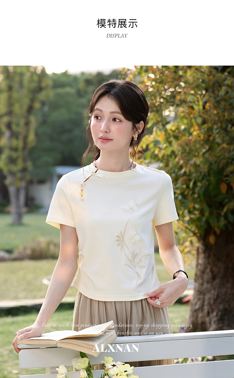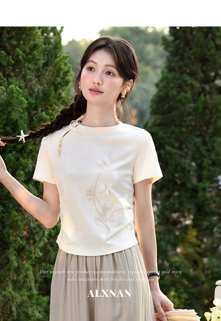 鹿向南【0417/20:00新品前1小时7折限量100件】圆领正肩浅杏色T恤