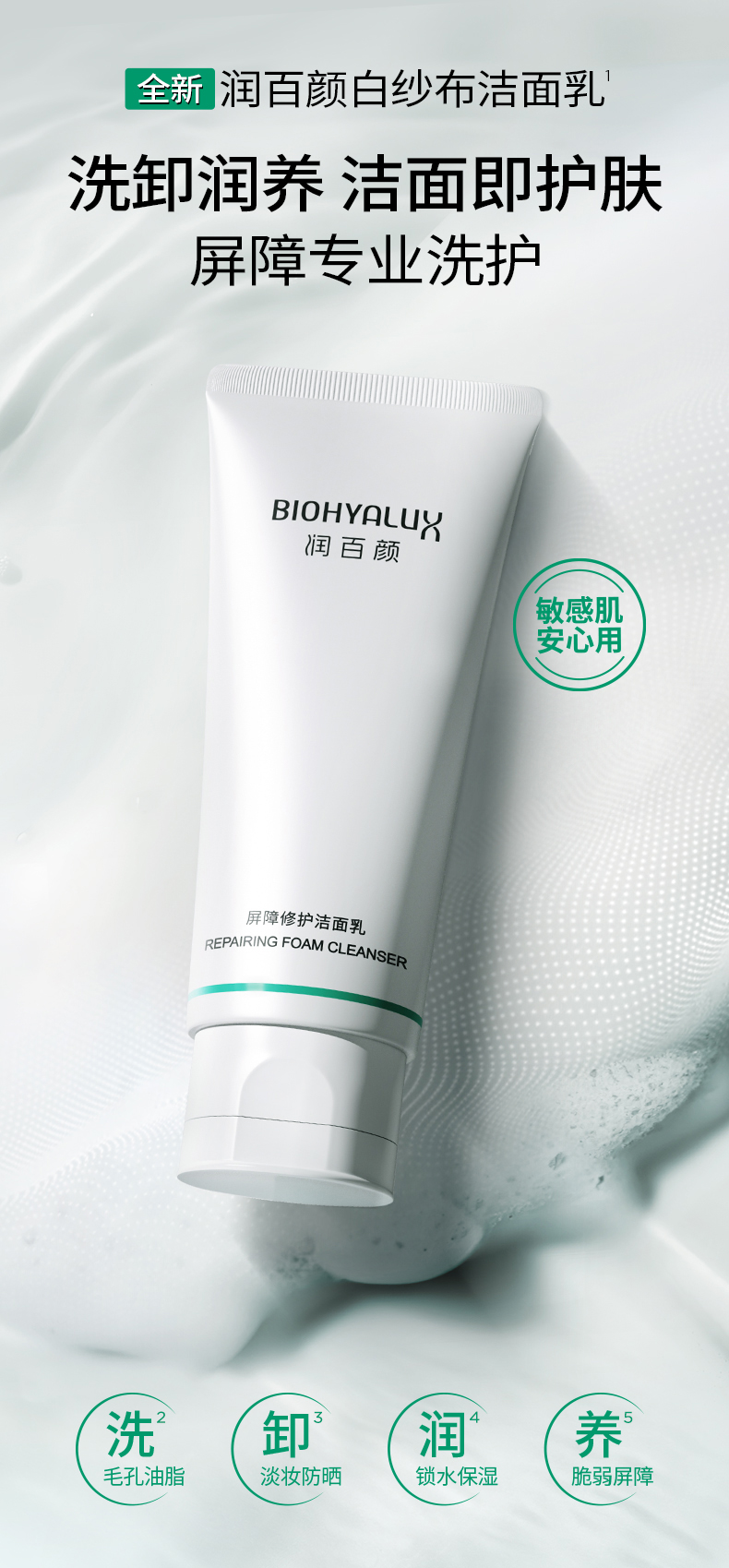 【洗卸合一】润百颜 屏障修护洁面乳 100g/支 洗感舒适