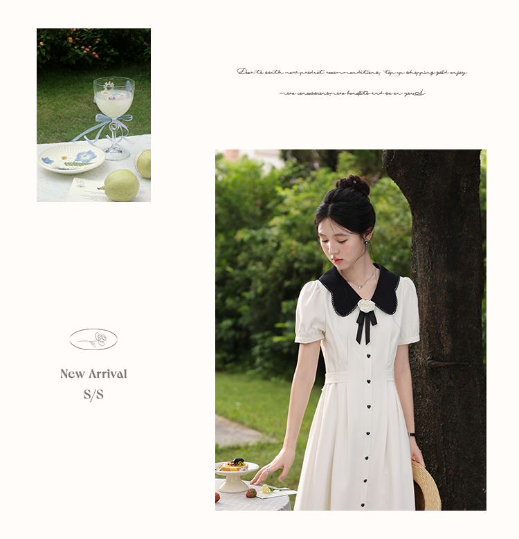 【65折秒杀】鹿向南「林间山茶」杏色法式娃娃领短袖连衣裙女夏季收腰显瘦长裙