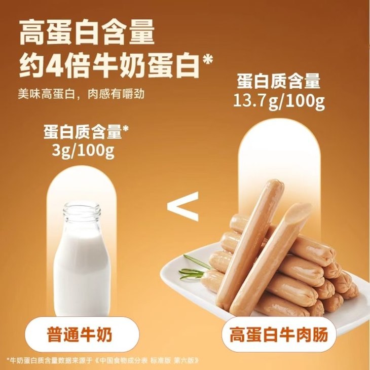 这款牛肉肠每100克,就含有13.7克优质蛋白质💯