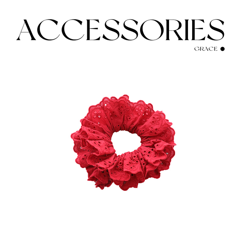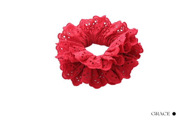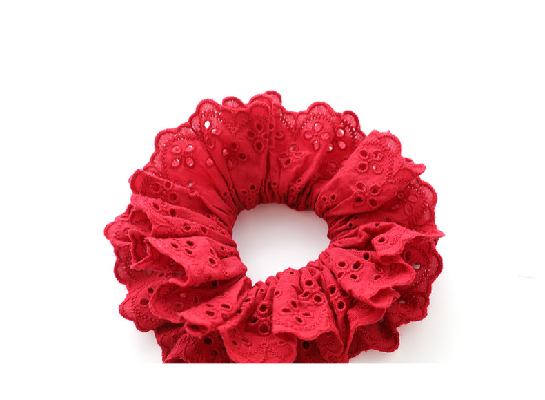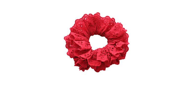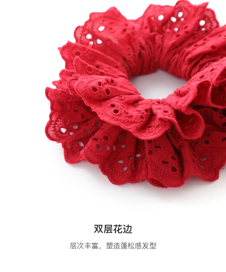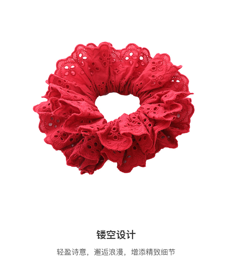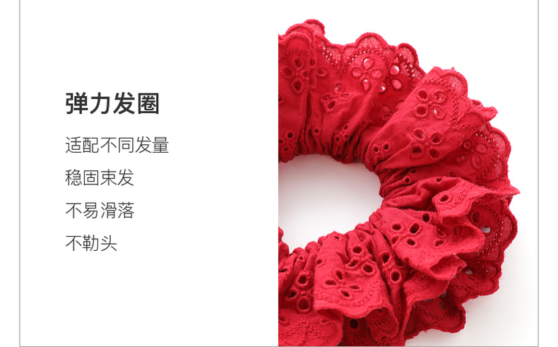 三彩2025新款甜美红色蕾丝镂空花边发圈通勤经典约会头饰氛围感女