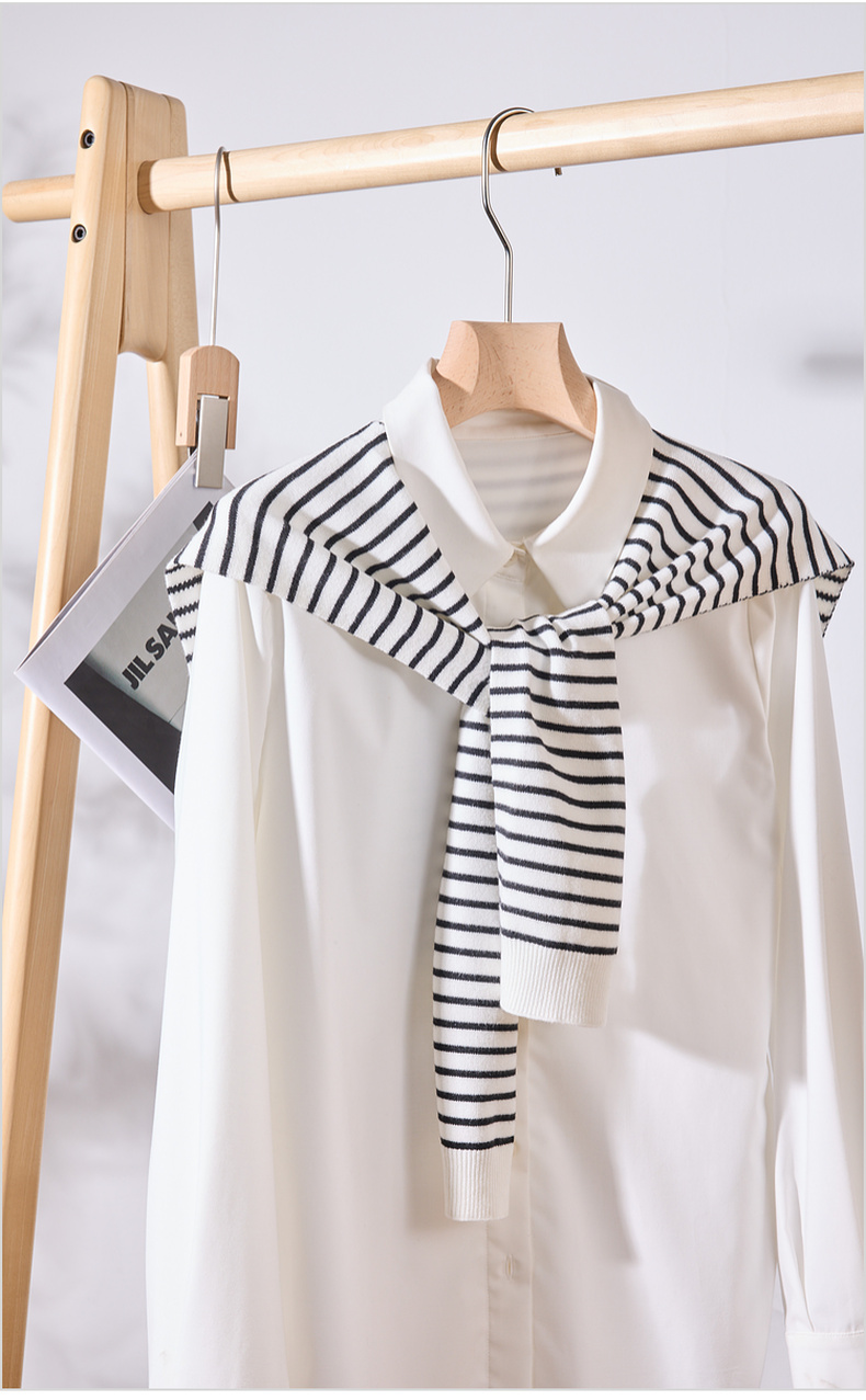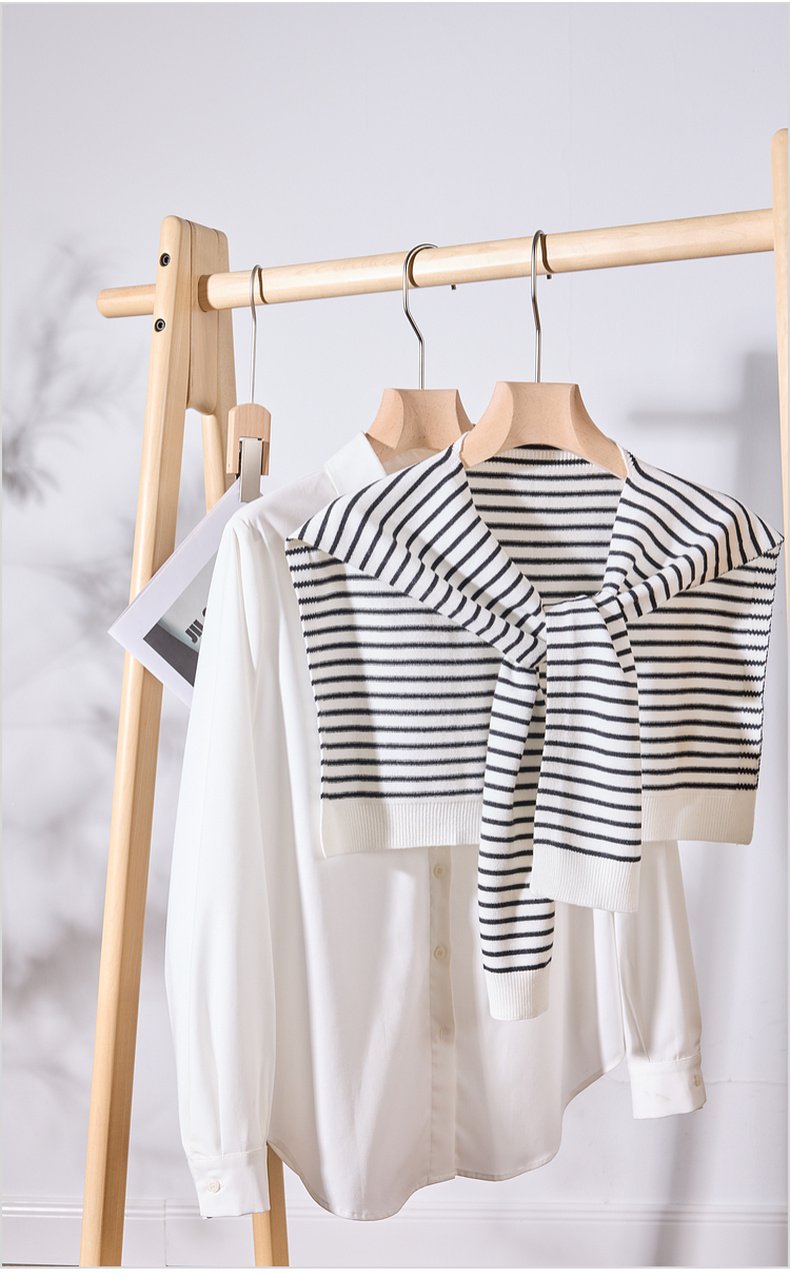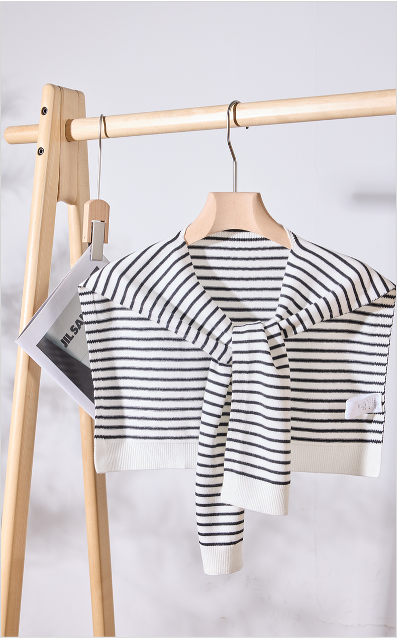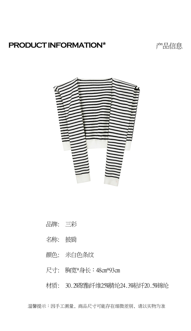 三彩2026新款撞色条纹时尚披肩外搭休闲百搭通勤出游潮流海军风女