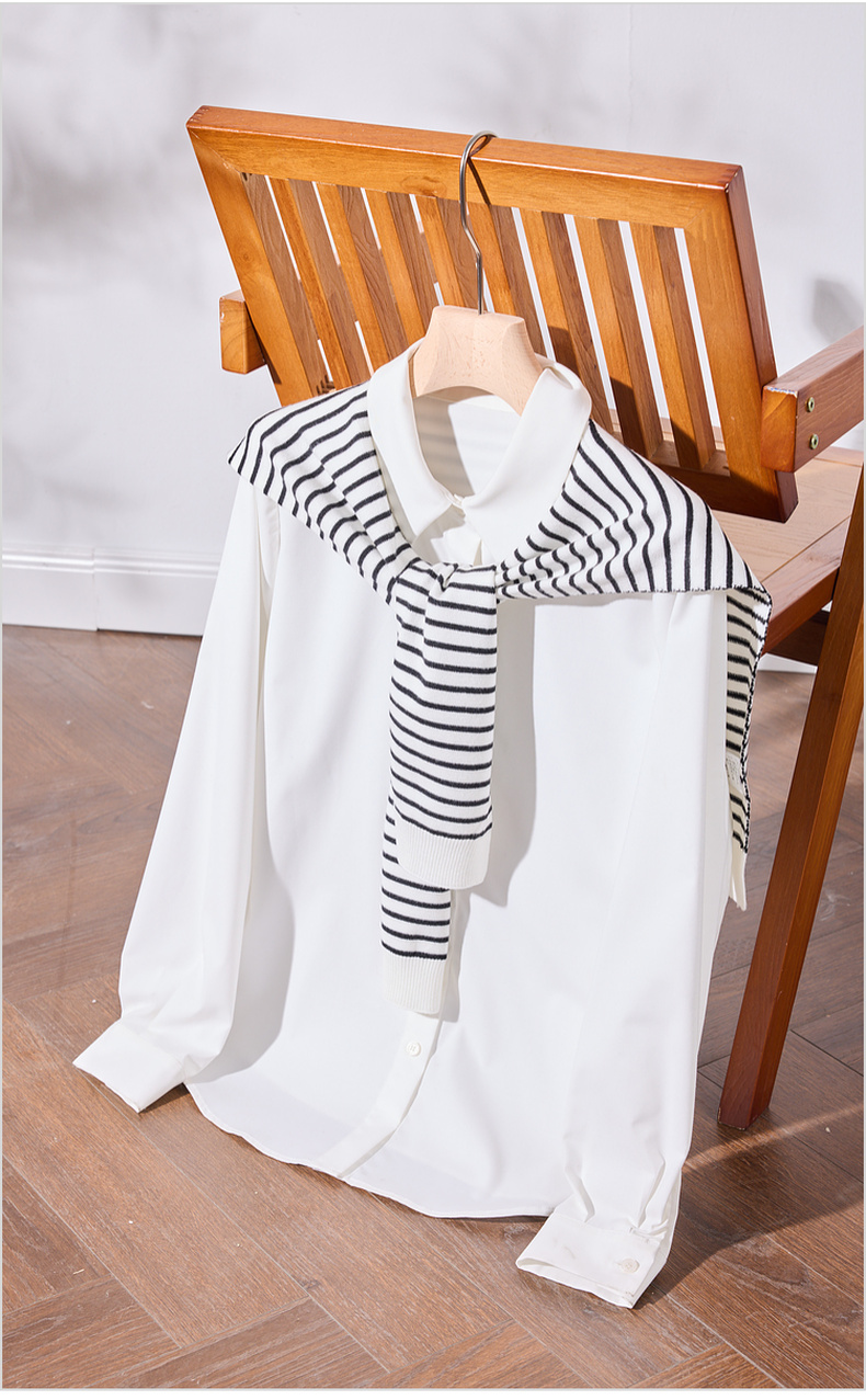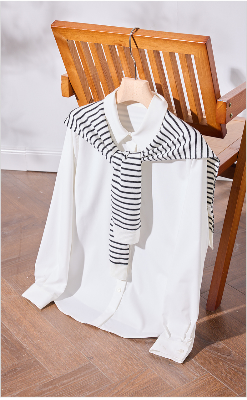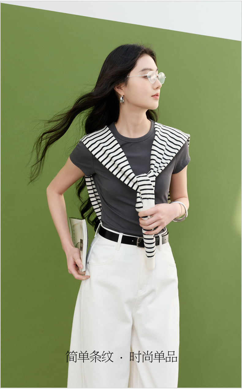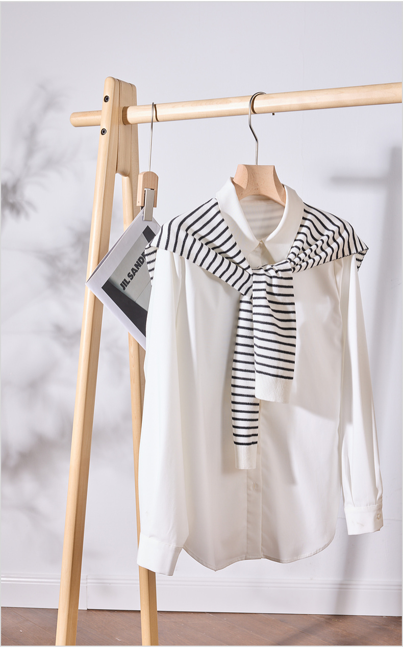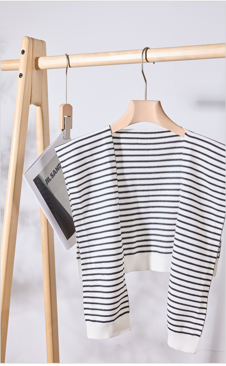 三彩2026新款撞色条纹时尚披肩外搭休闲百搭通勤出游潮流海军风女