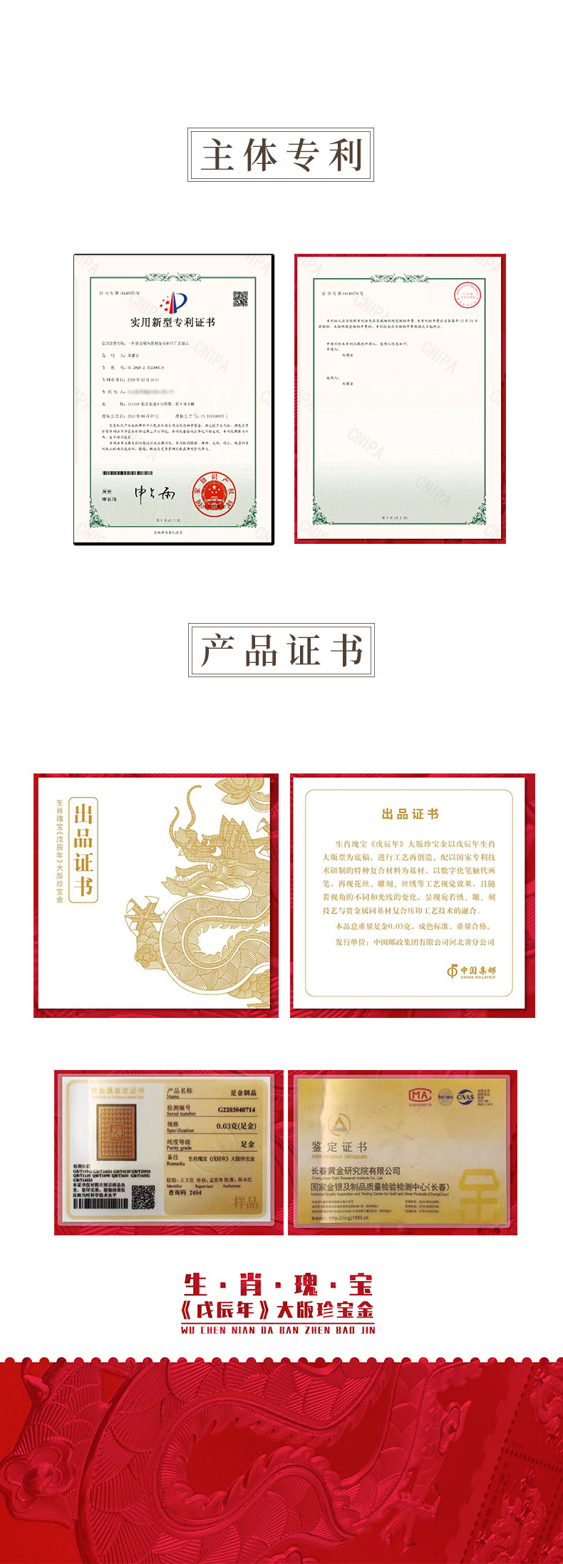 【中国邮政特别审批】1988年《戊辰年》龙年 生肖邮票 大版珍宝 以第—轮生肖龙年邮票为题材 硬通货 金子用到邮票上