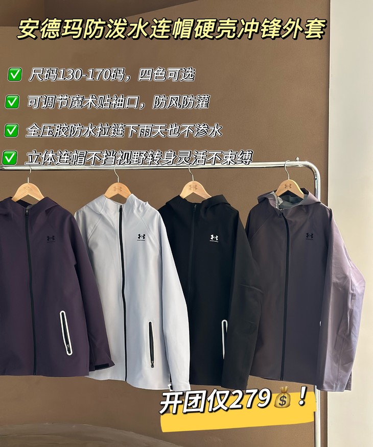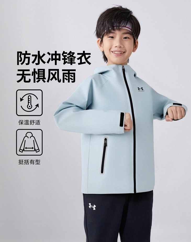 【品牌直发】安德玛亲子款防泼水连帽硬壳冲锋外套 硬壳守护 无惧风雨 一件穿三季节 Under Armour KIDS