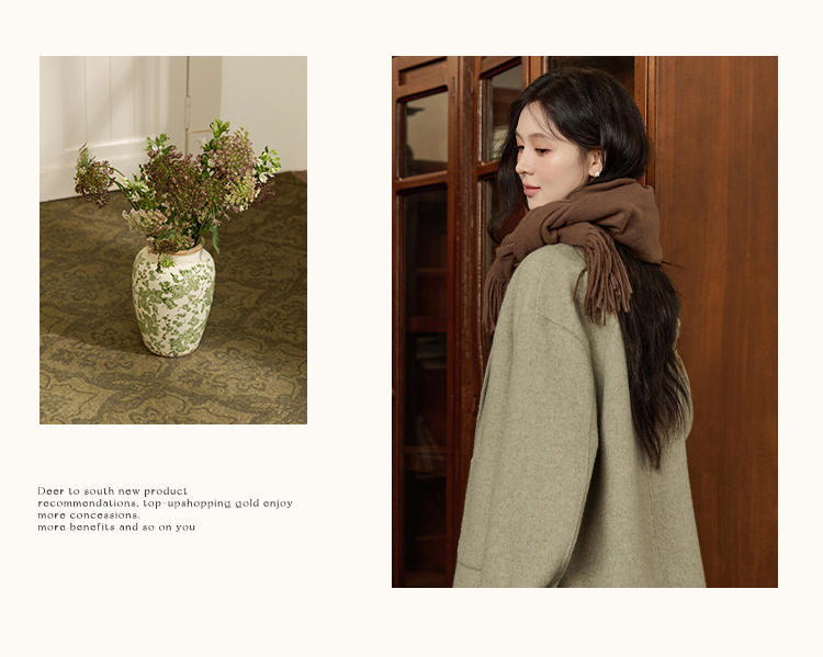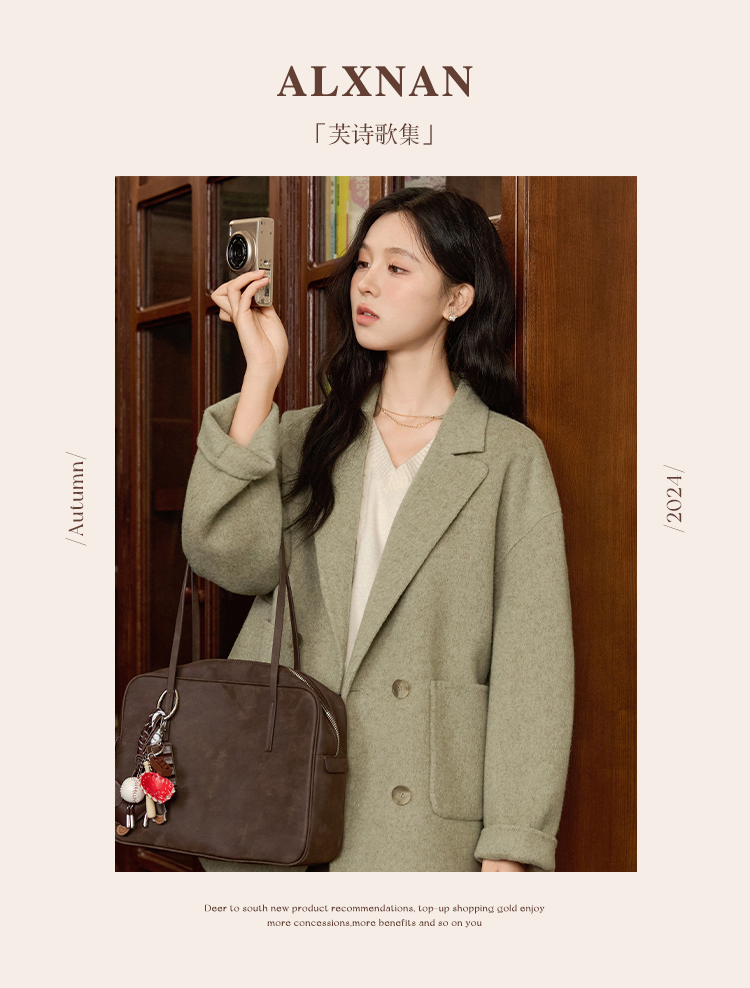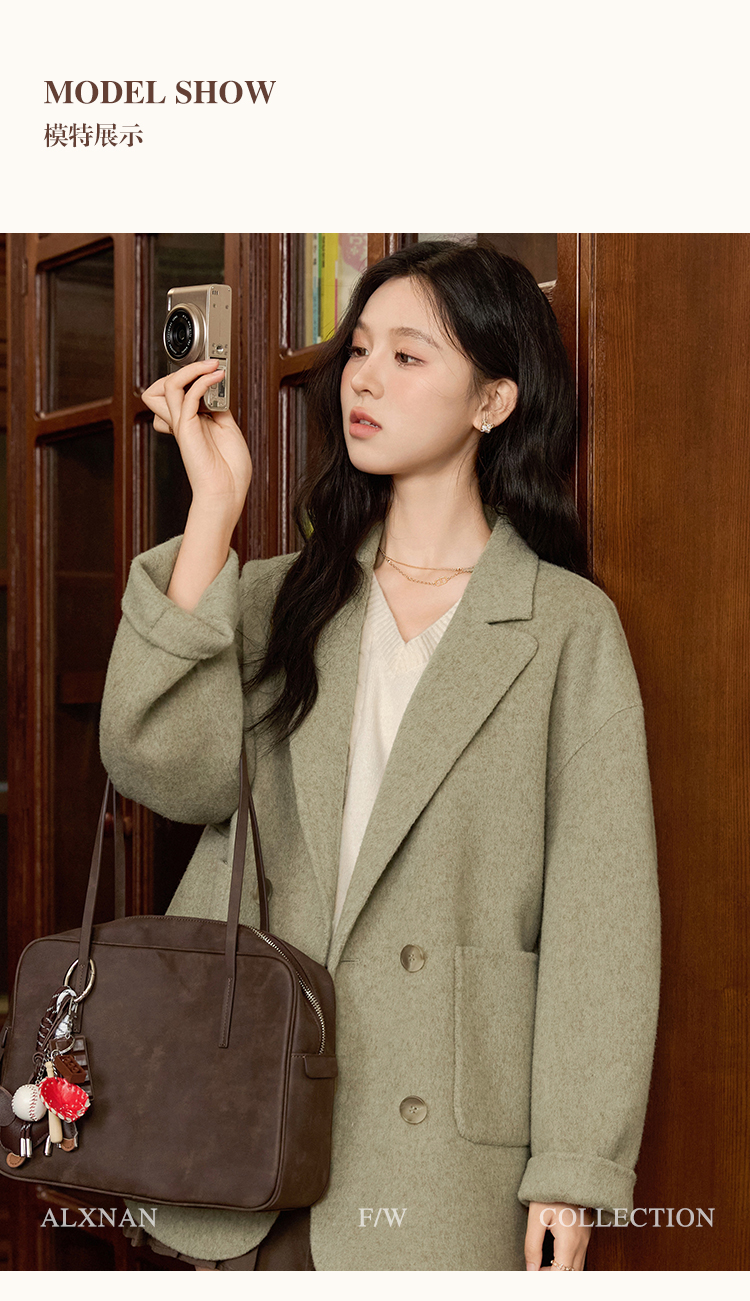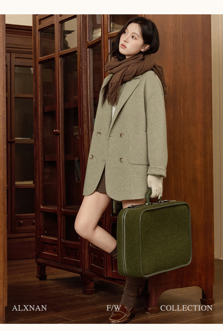 鹿向南「芙诗歌集」复古绿色双面毛呢西装冬季外套大衣女短款L50951-1
