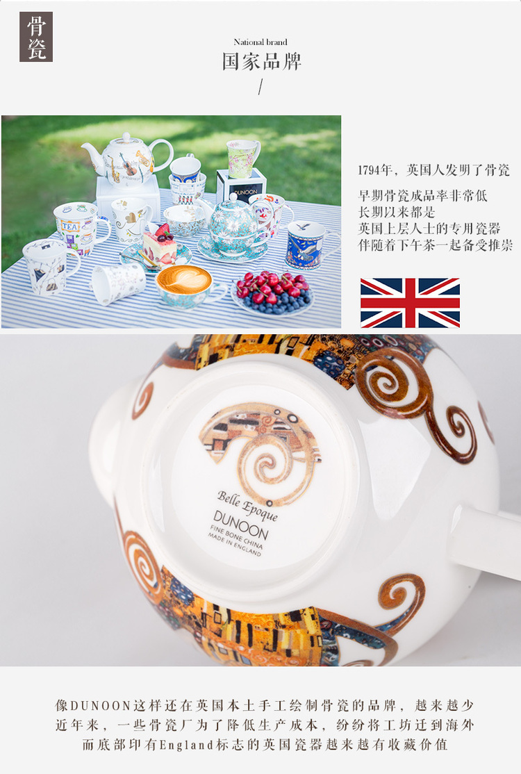 英国原产DUNOON丹侬"The Kiss"油画系列骨瓷茶壶水壶茶具