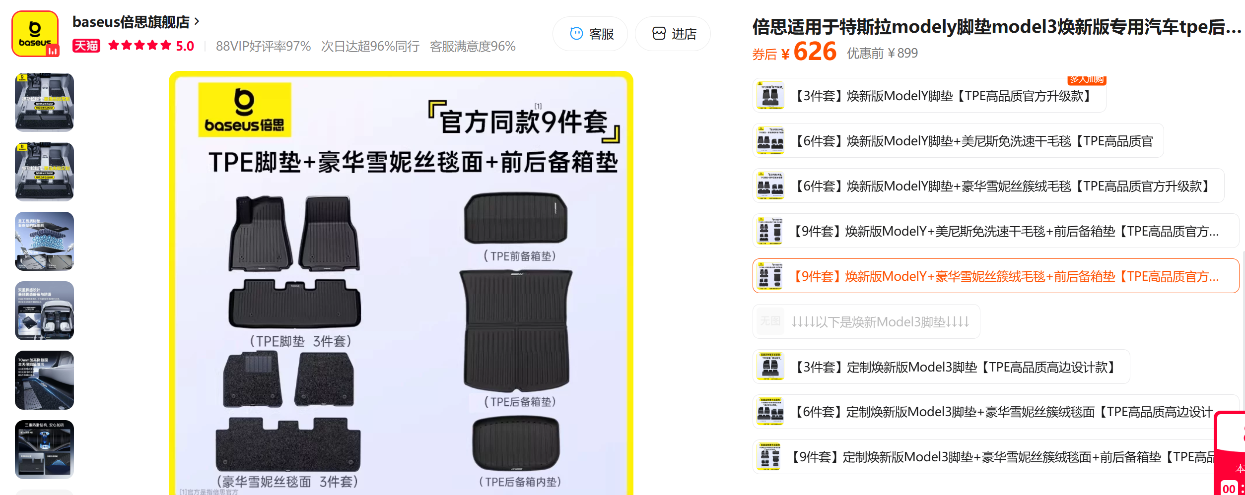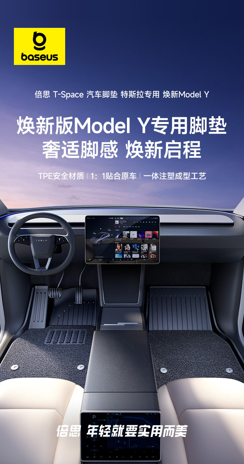 【9件套】倍思 TPE脚垫套装 适用焕新版特斯拉ModelY 后备箱套装配件