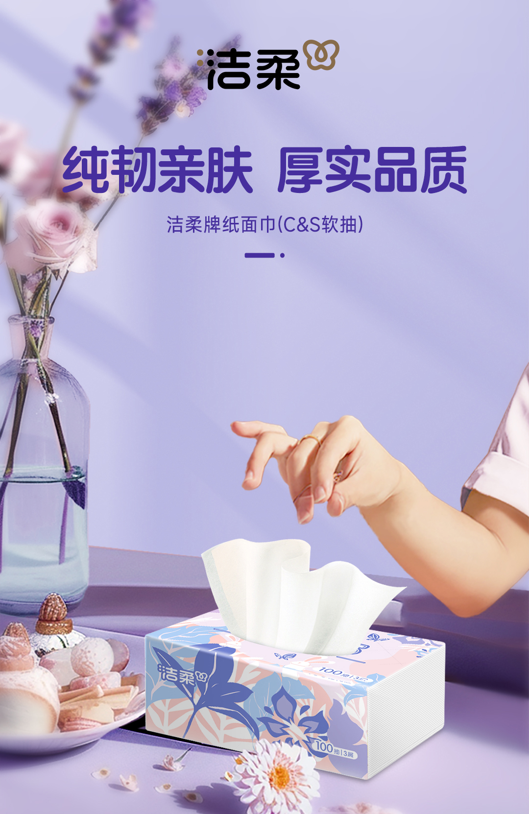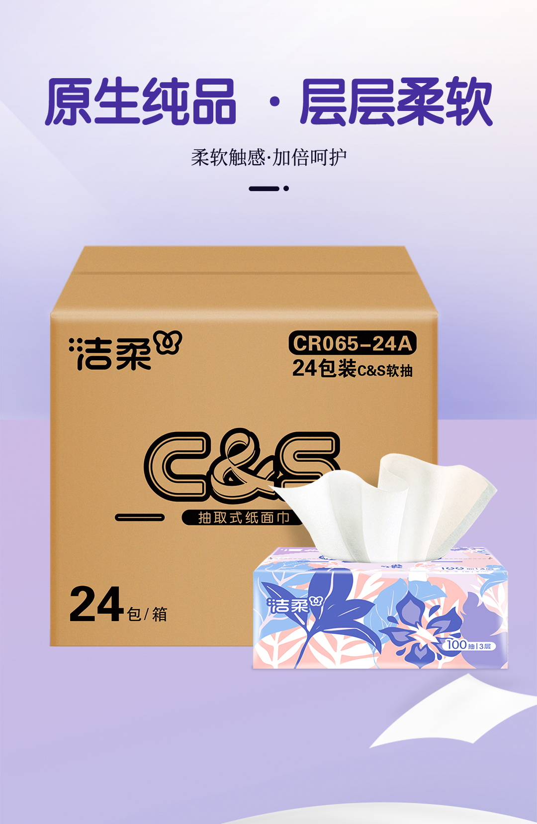 洁柔牌纸面巾×100抽3层×24包 CR065-24A