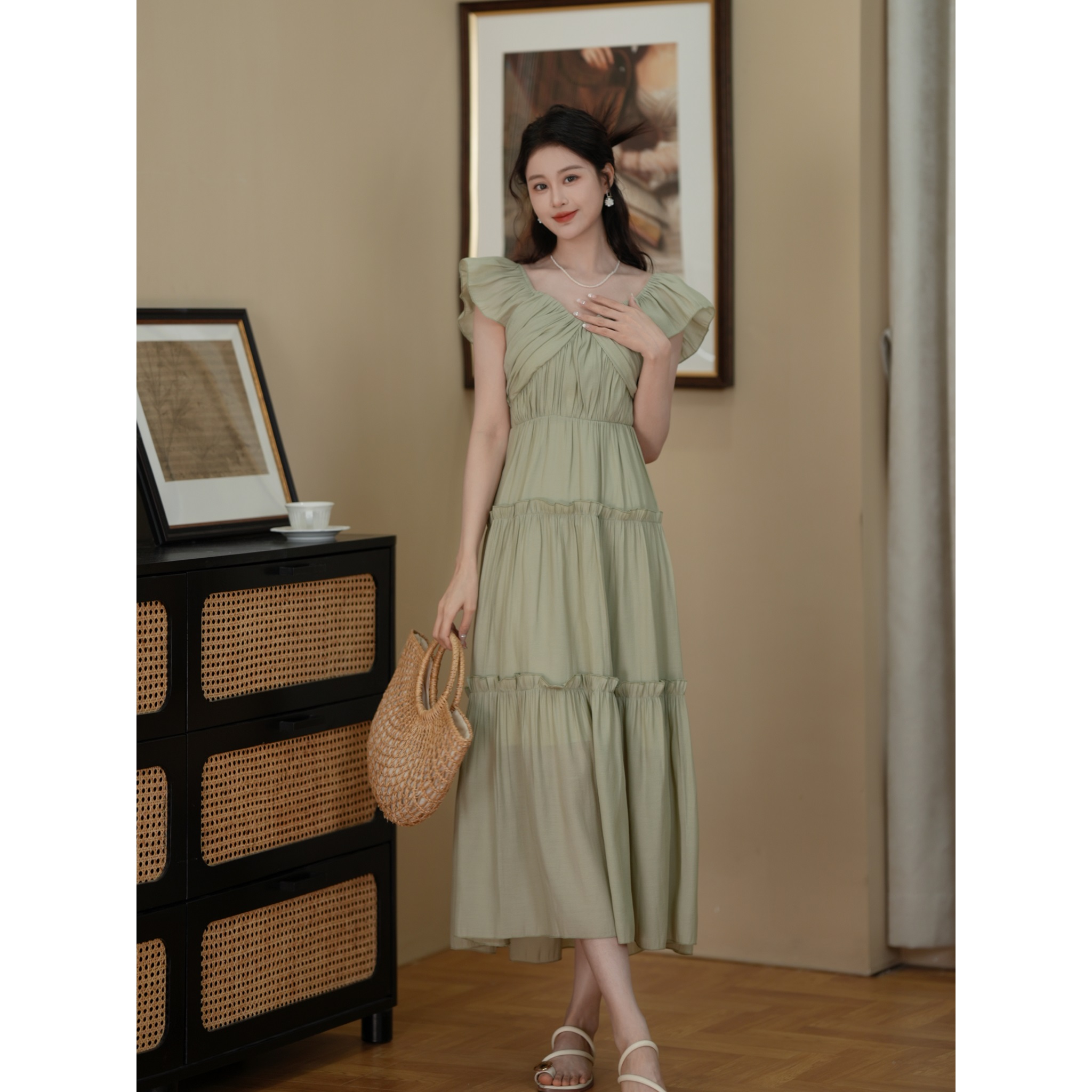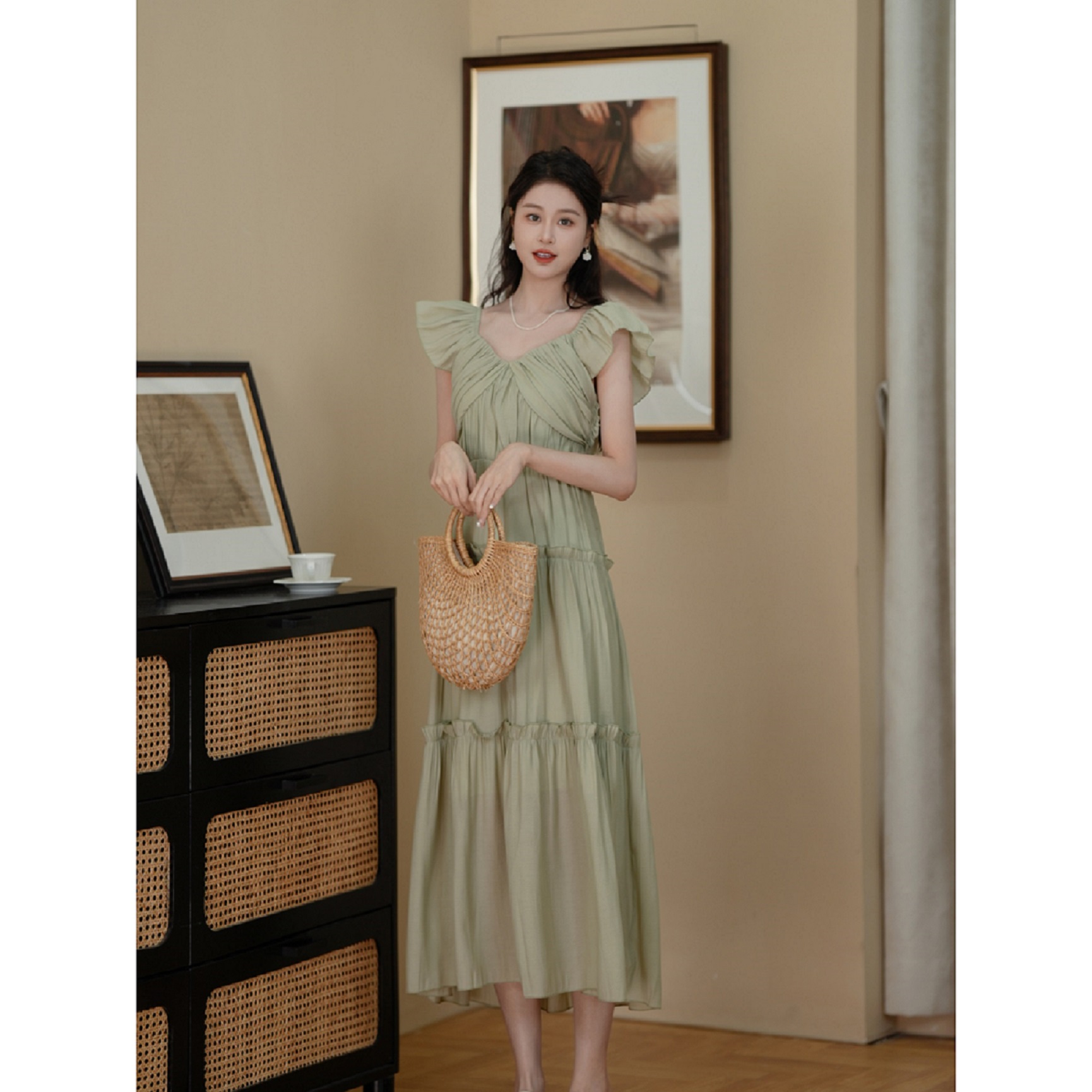 鹿向南【本命小绿】气质复古温柔显瘦初恋茶歇法式连衣裙QYM001582