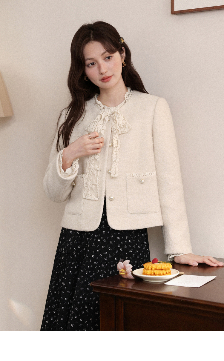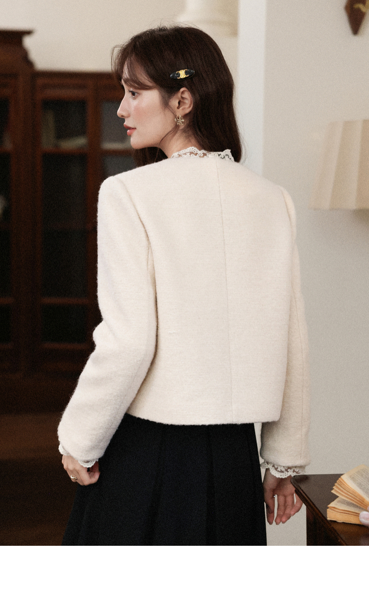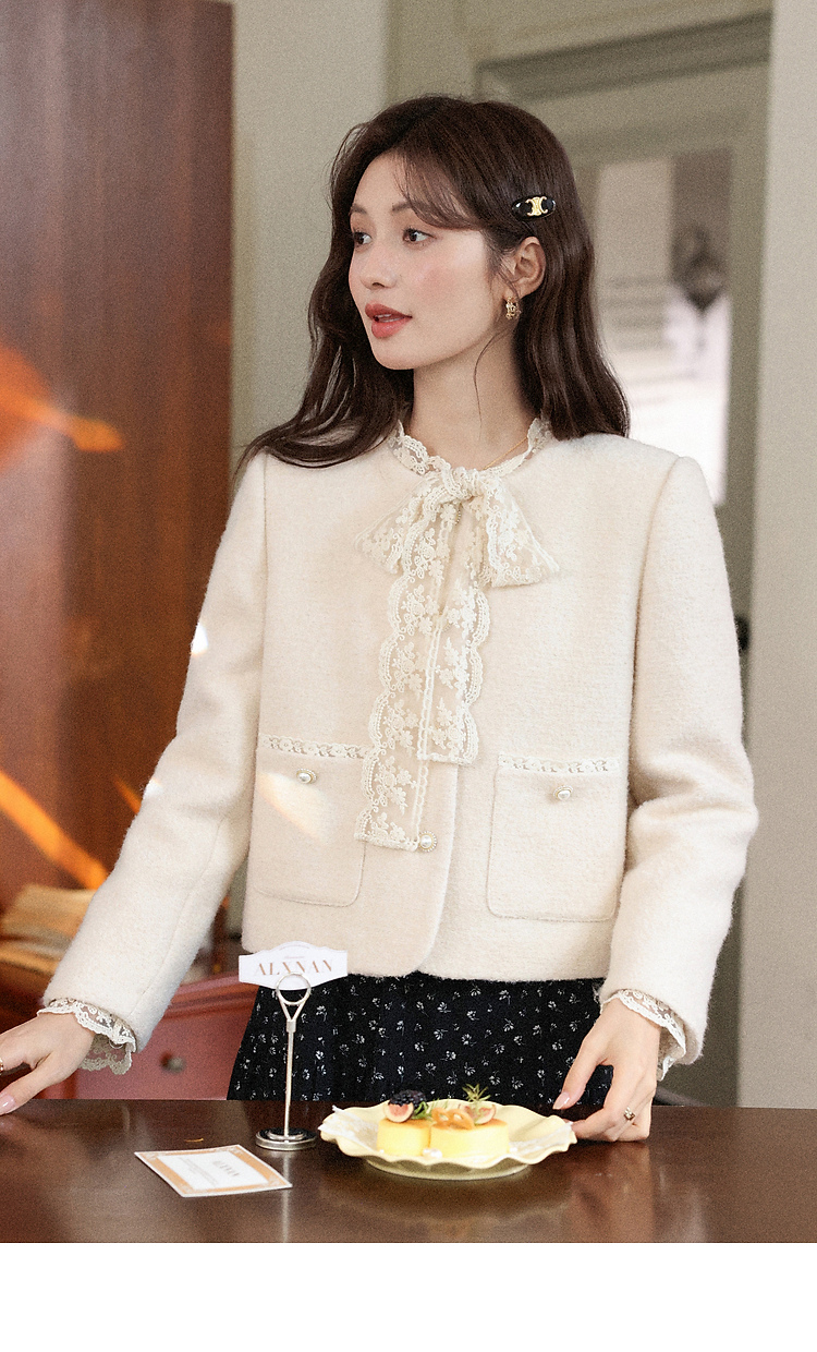 鹿向南「温赫蒂尔」杏色小香风短款外套女气质高级感洋气开衫上衣